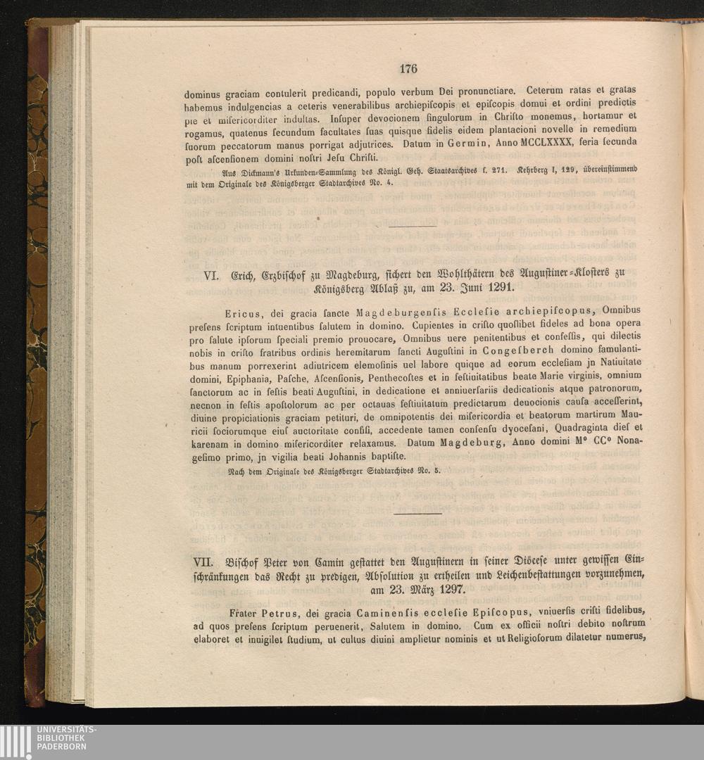 VI. Erich, Erzbischof zu Magdeburg, sichert den Wohlthätern des Augustiner - Klosters[...]