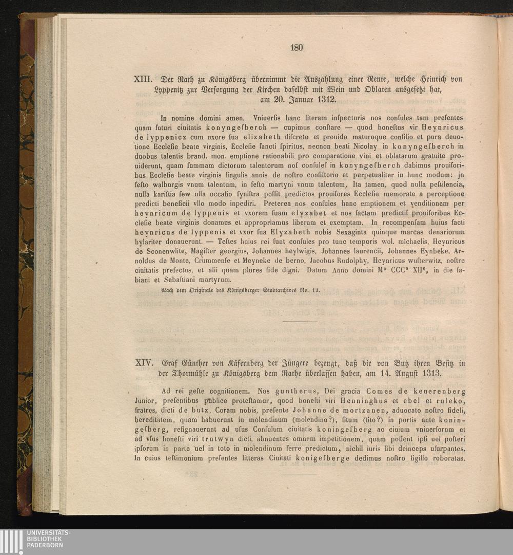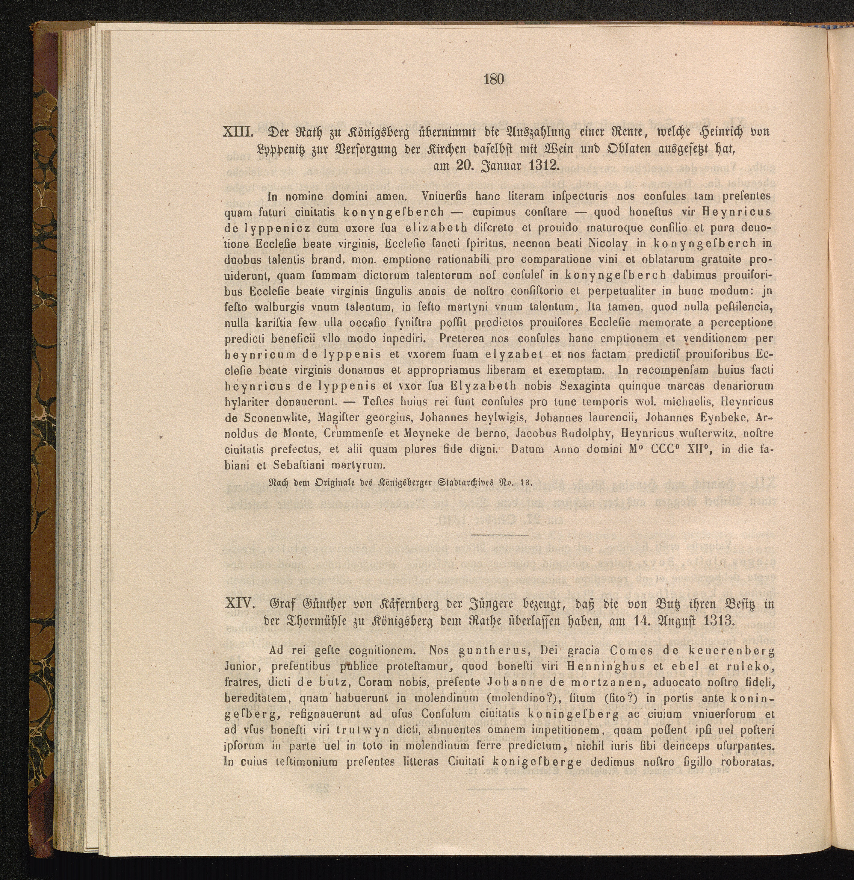 XIII. Der Rath zu Königsberg übernimmt die Auszahlung einer Rente, welche Heinrich[...]