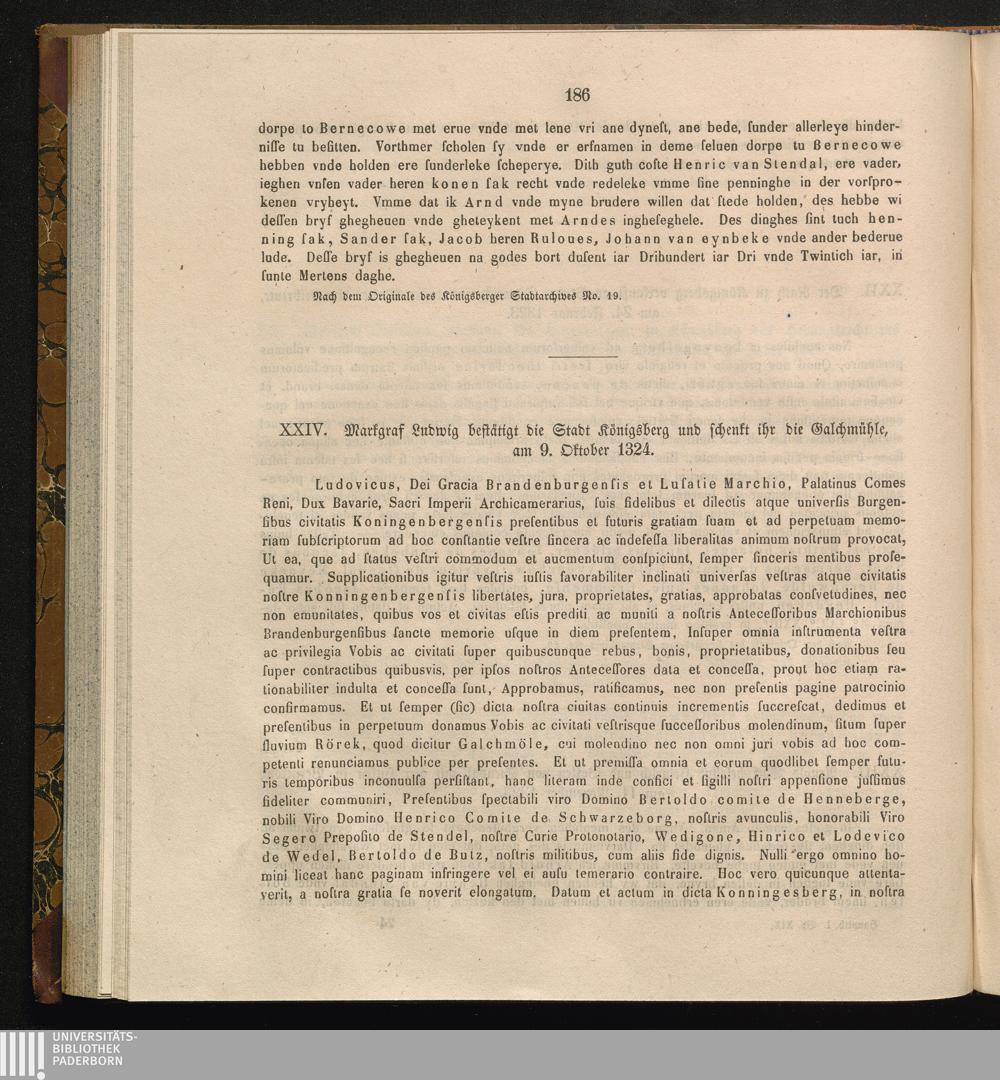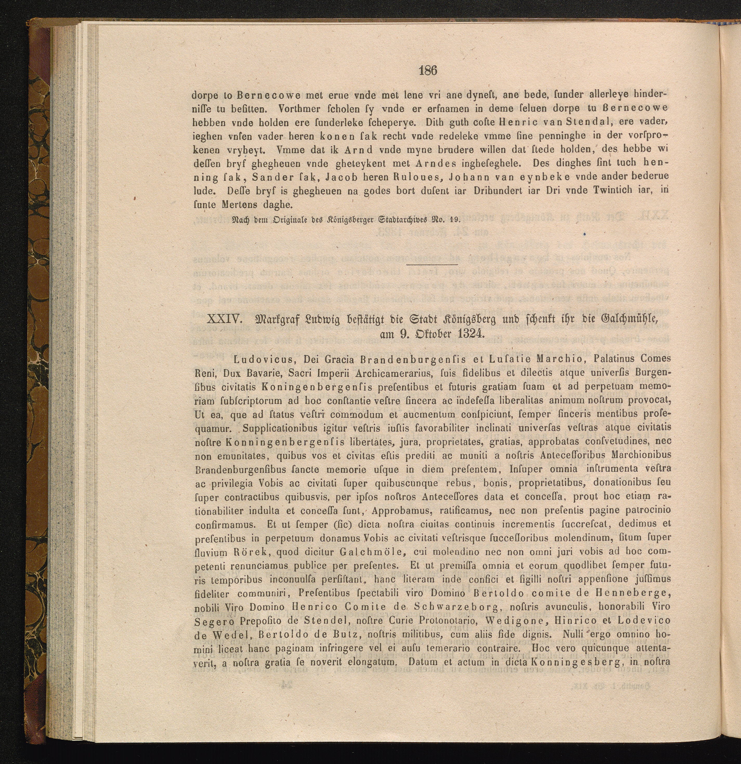 XXIV. Markgraf Ludwig bestätigt die Stadt Königsberg und schenkt ihr die Galchmühle,[...]