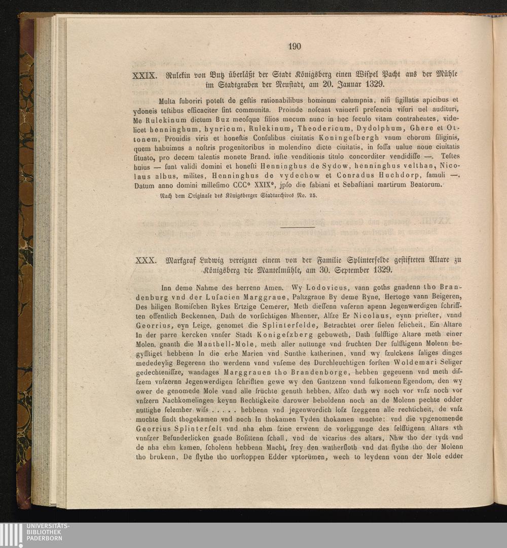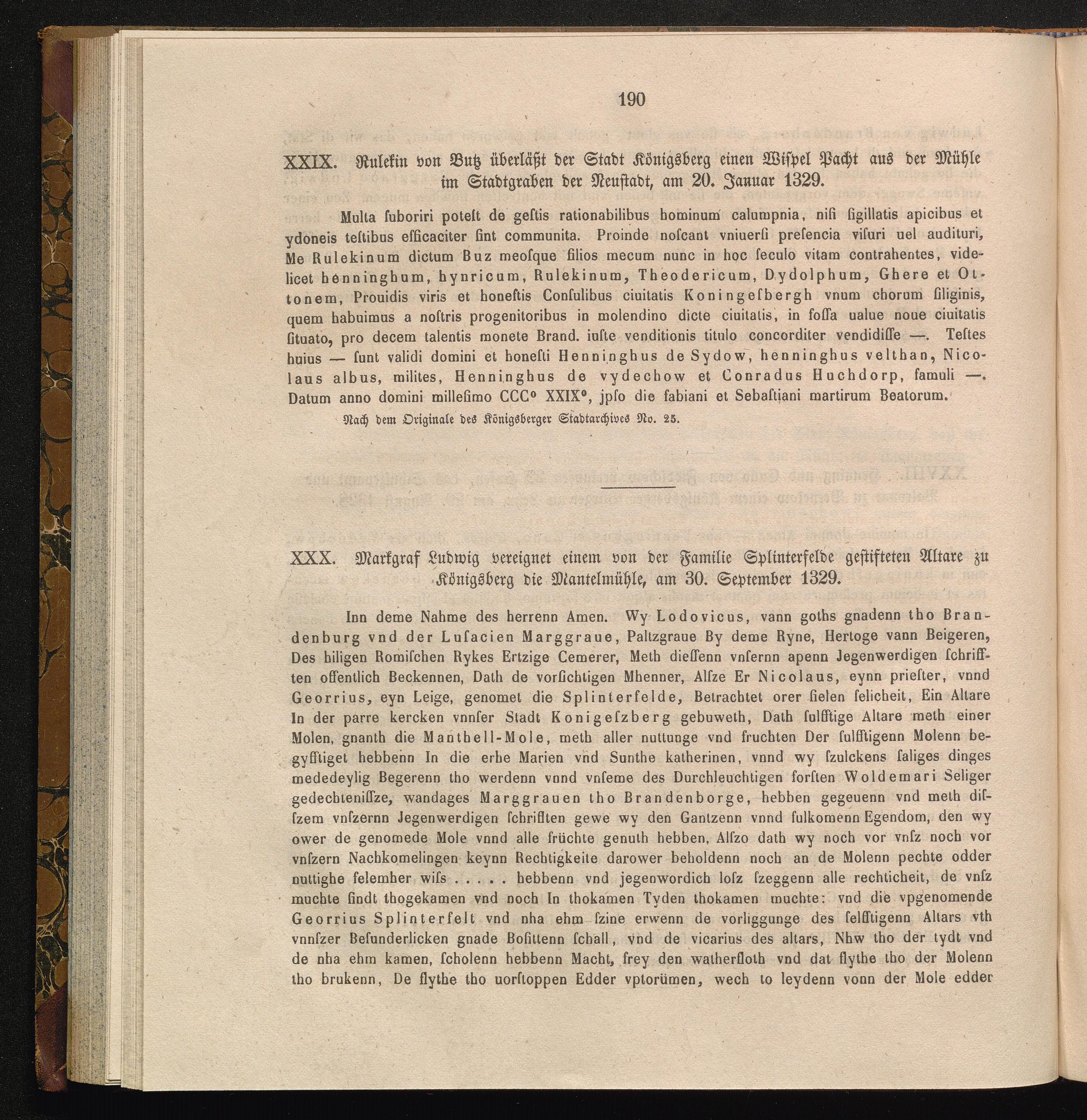 XXIX. Rulekin von Butz überläßt der Stadt Königsberg einen Wispel Pacht aus der Mühle[...]