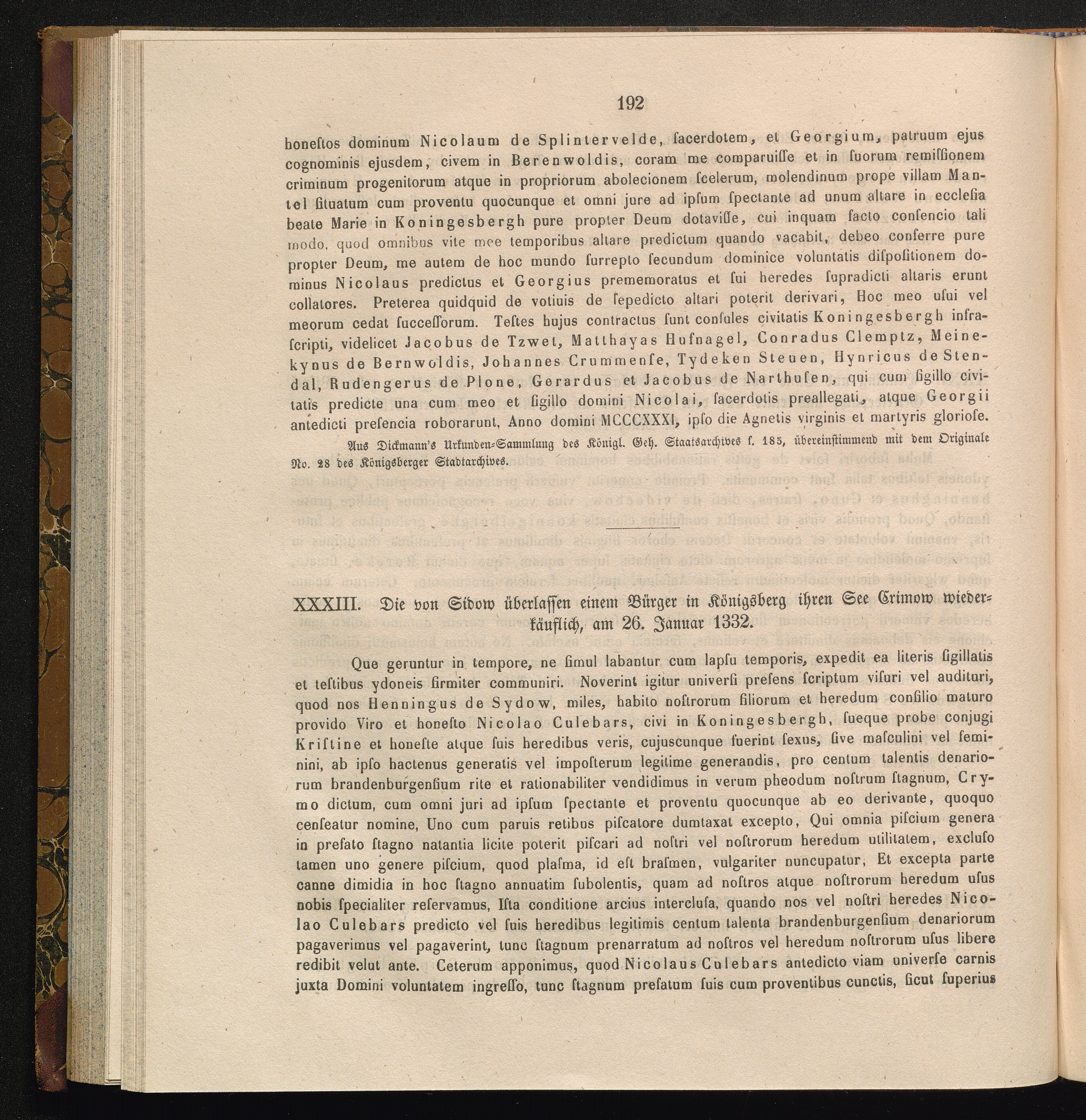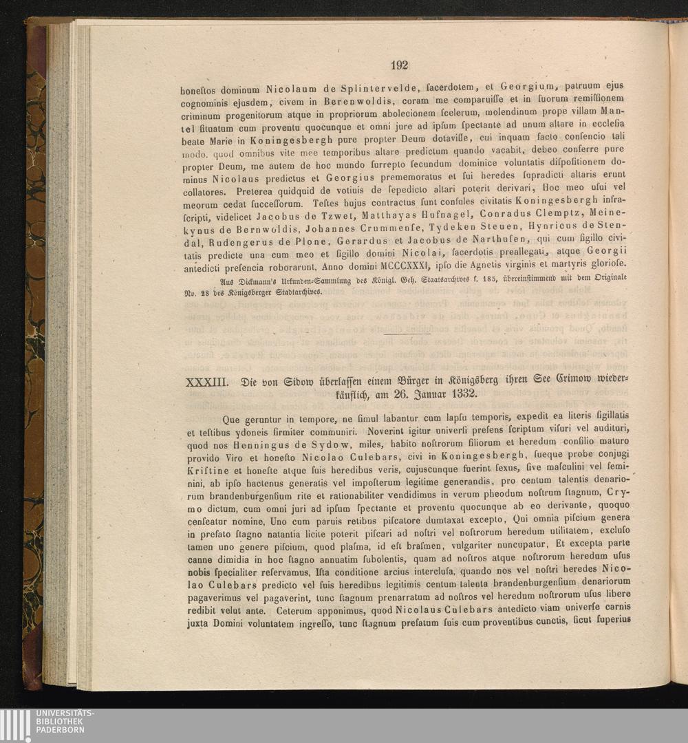 XXXIII. Die von Sidow überlassen einem Bürger in Königsberg ihren See Crimow wiederkäuflich,[...]