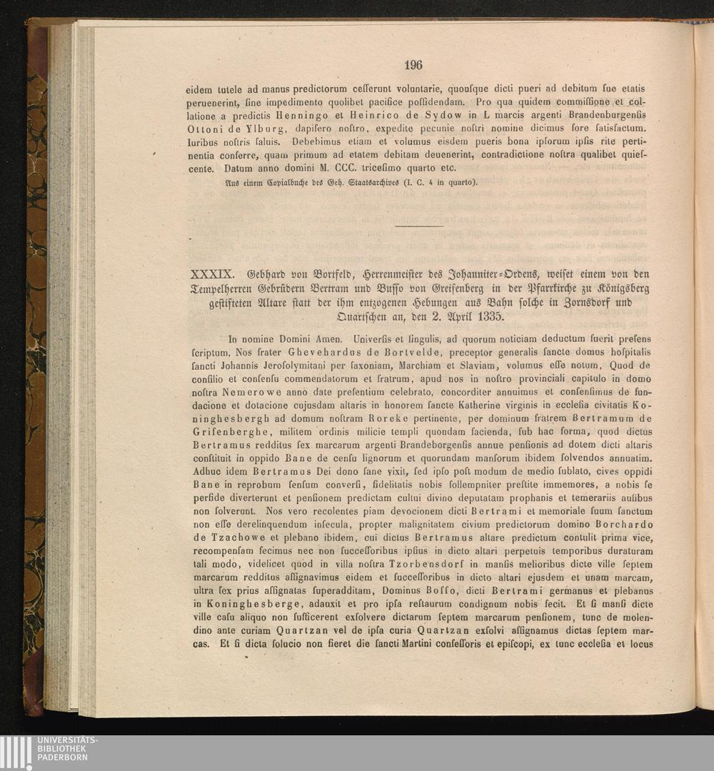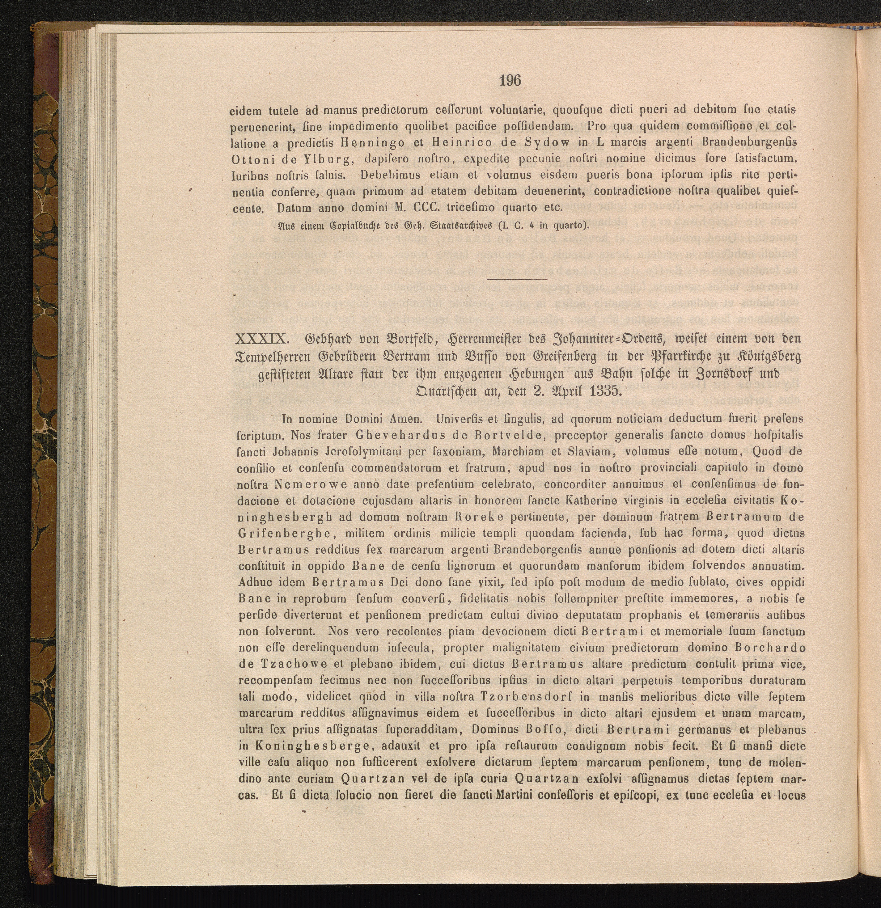 XXXIX. Gebhard von Bortfeld, Herrenmeister des Johanniter - Ordens, weiset einem[...]