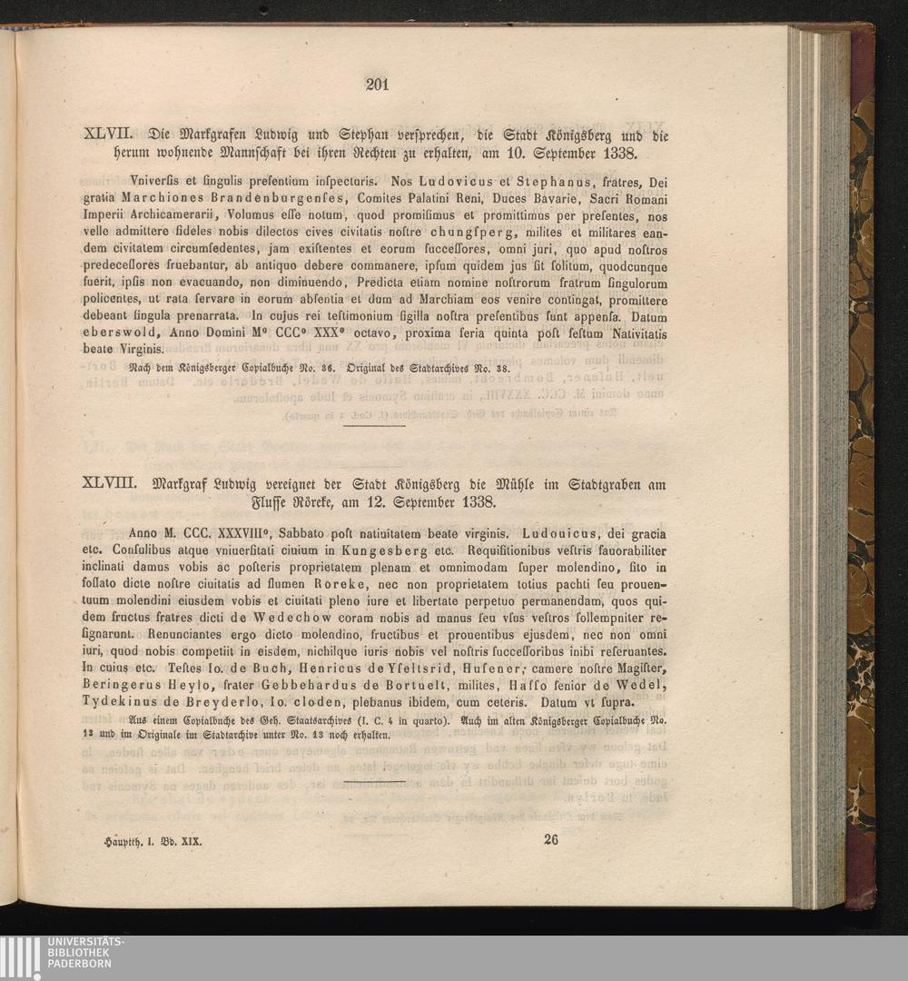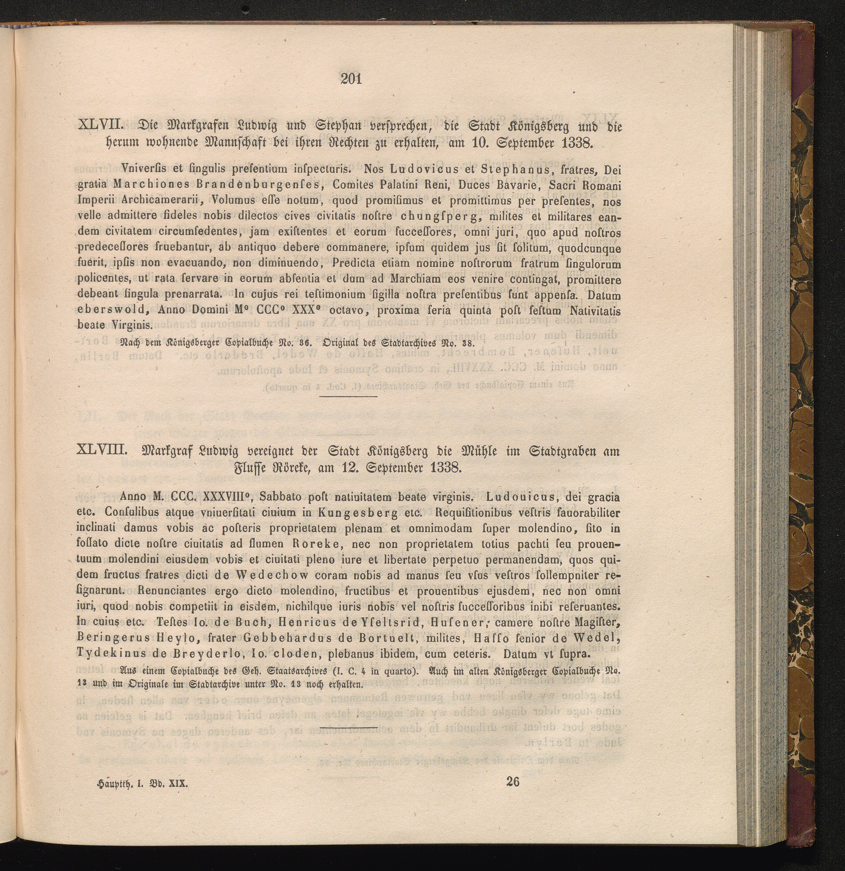 XLVII. Die Markgrafen Ludwig und Stephan versprechen, die Stadt Königsberg und die[...]