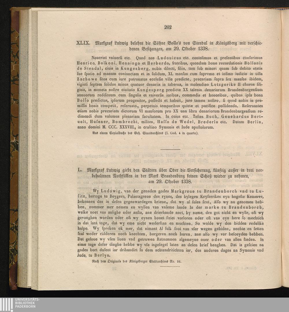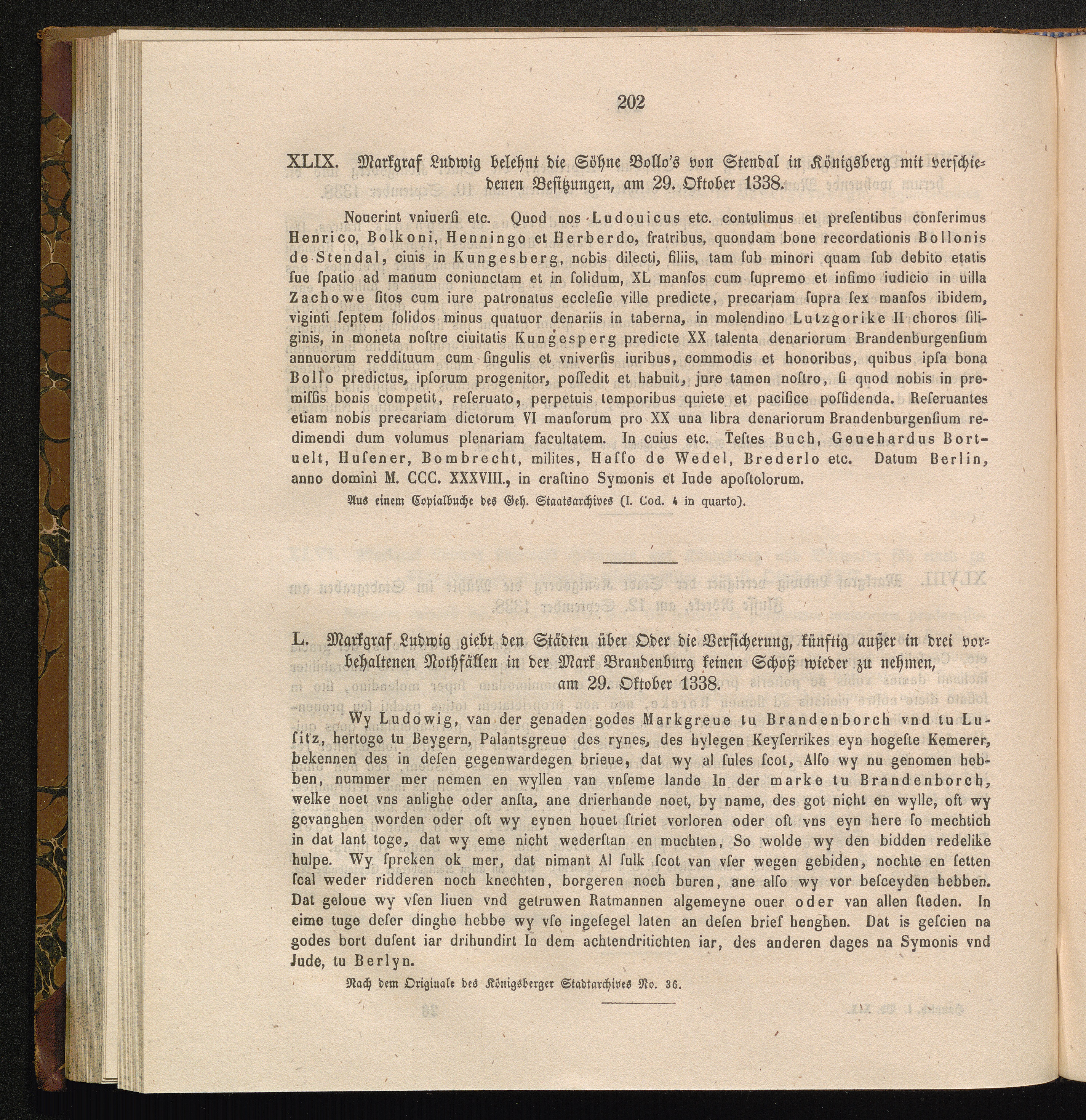 XLIX. Markgraf Ludwig belehnt die Söhne Bollo's von von Stendal in Königsberg mit[...]