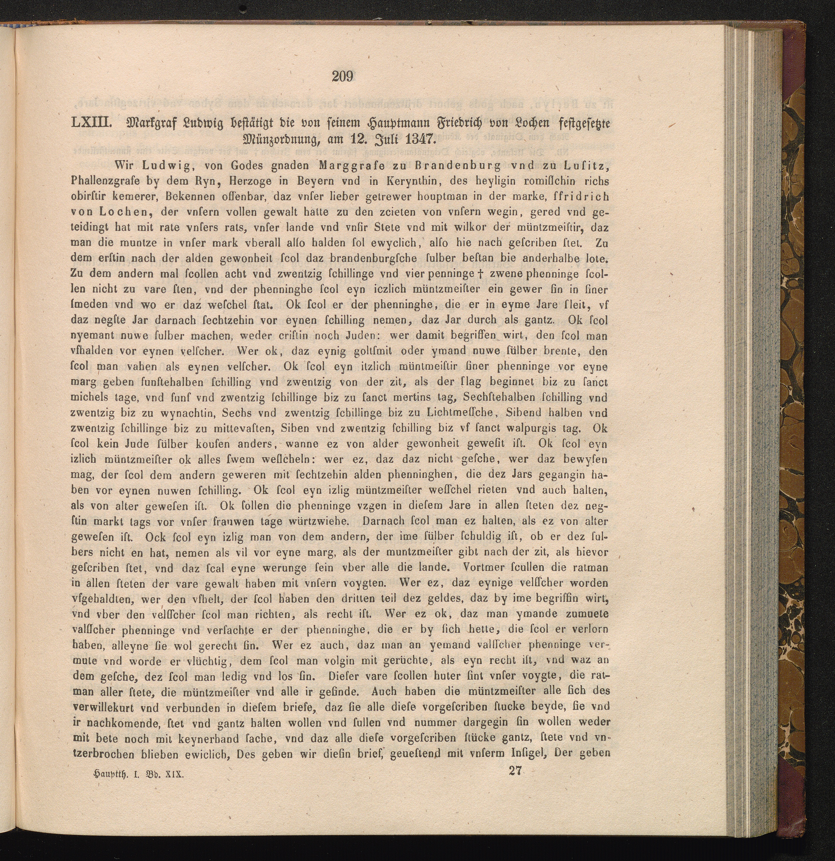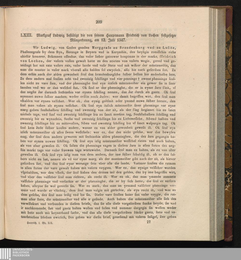 LXIII. Markgraf Ludwig bestätigt die von seinem Hauptmann Friedrich von Lochen festgesetzte[...]
