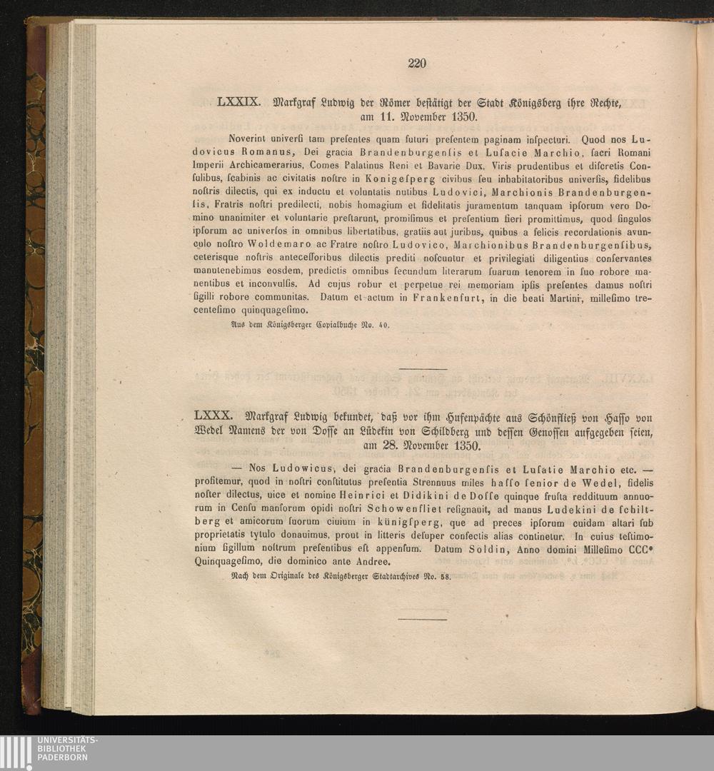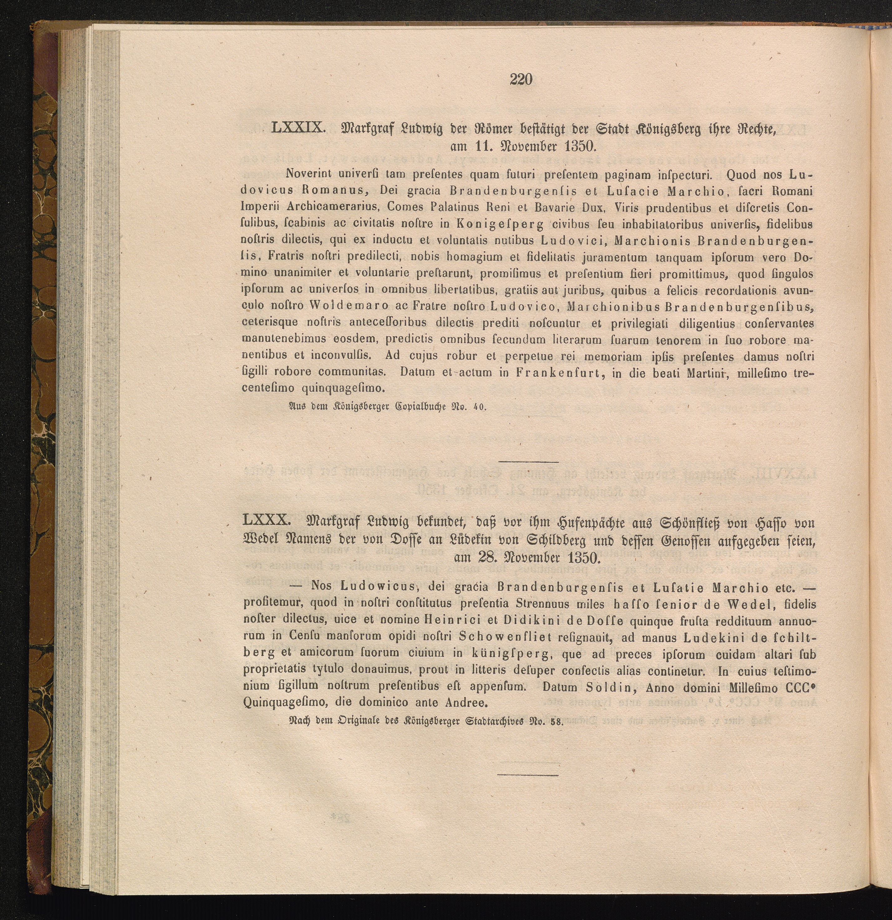 LXXIX. Markgraf Ludwig der Römer bestätigt der Stadt Königsberg ihre Rechte, am 11.[...]