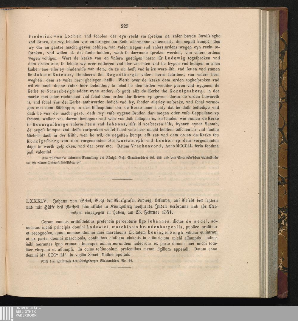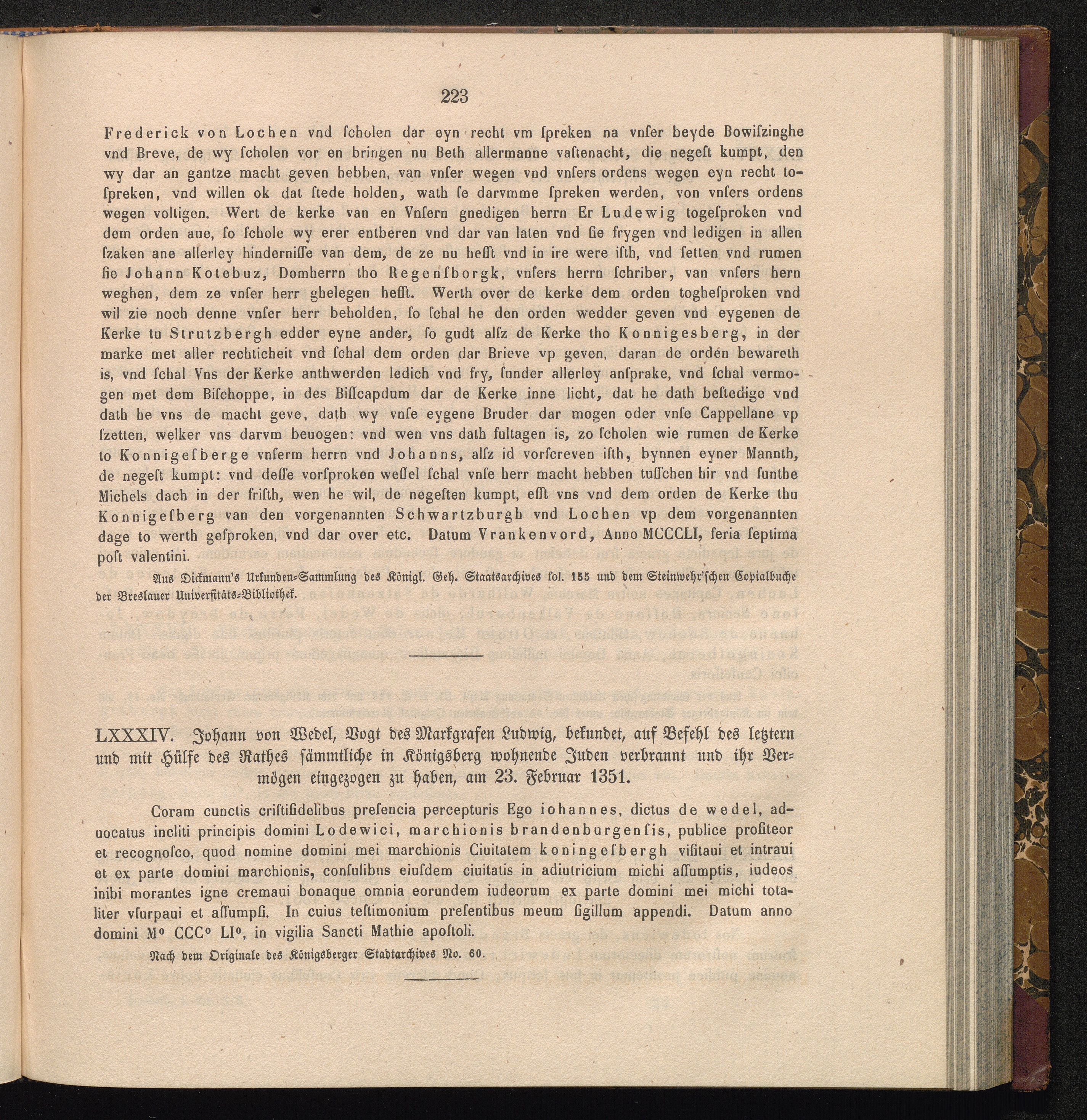 LXXXIV. Johann von Wedel, Vogt des Markgrafen Ludwig, bekundet, auf Befehl des letztern[...]