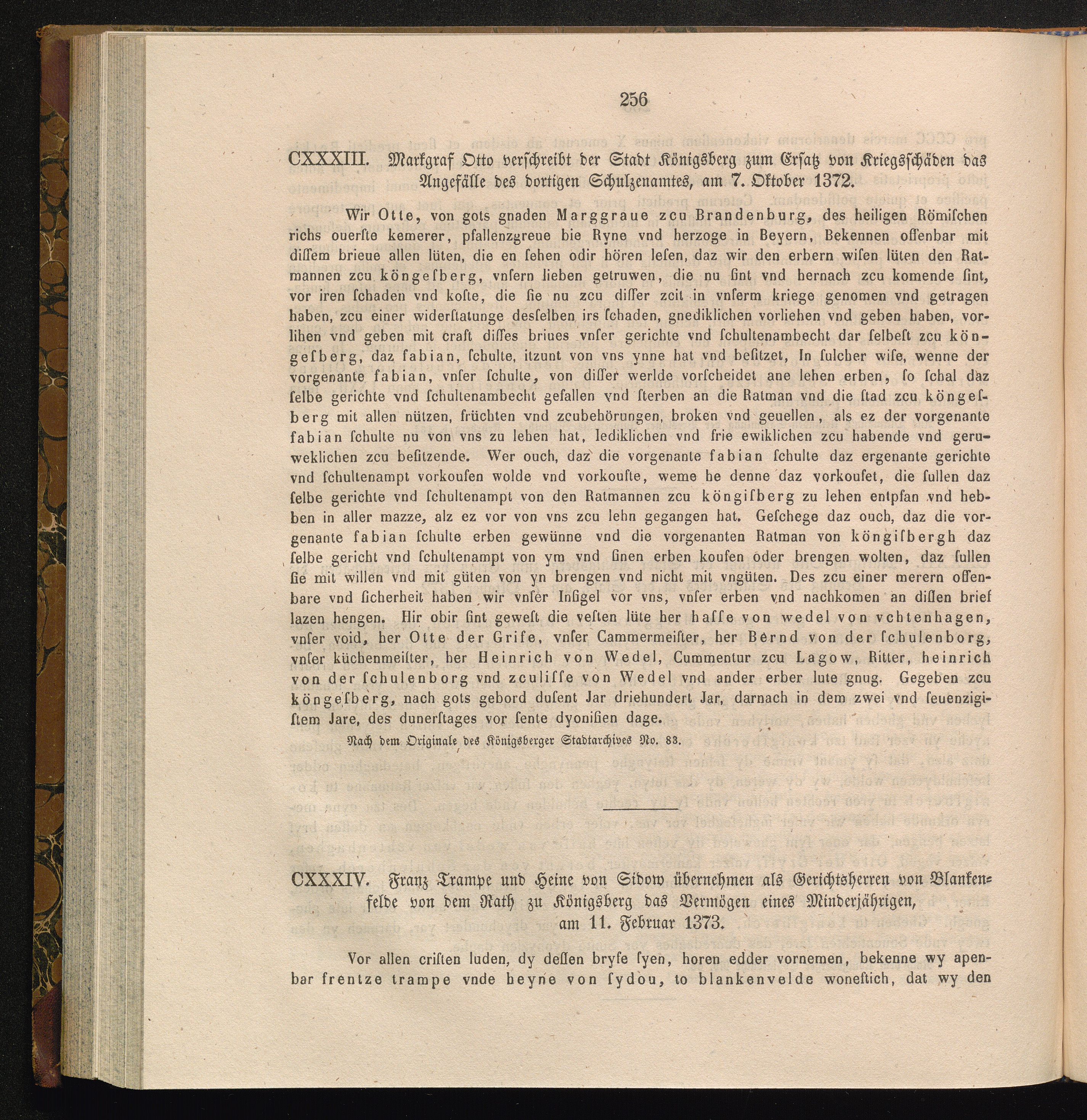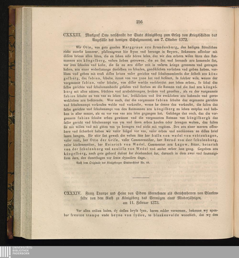 CXXXIII. Markgraf Otto verschreibt der Stadt Königsberg zum Ersatz von Kriegsschäden[...]