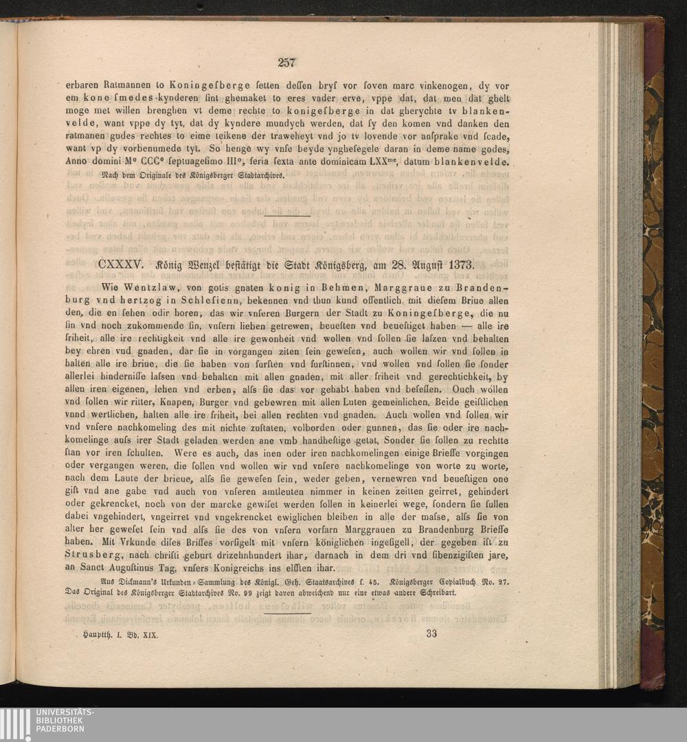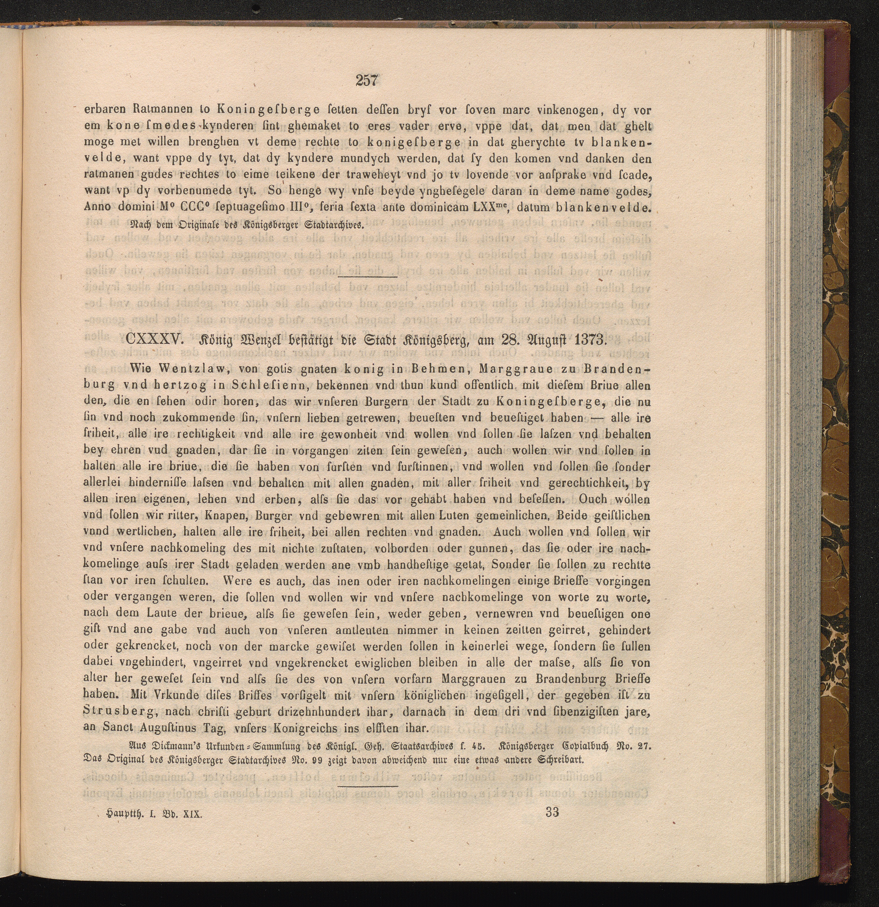 CXXXV. König Wenzel bestätigt die Stadt Königsberg, am 28. August 1373.