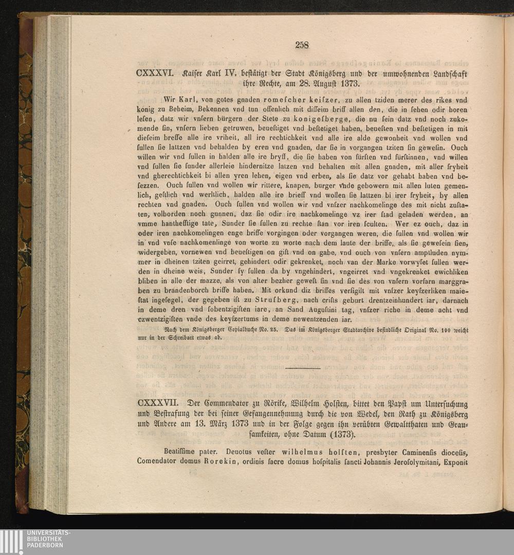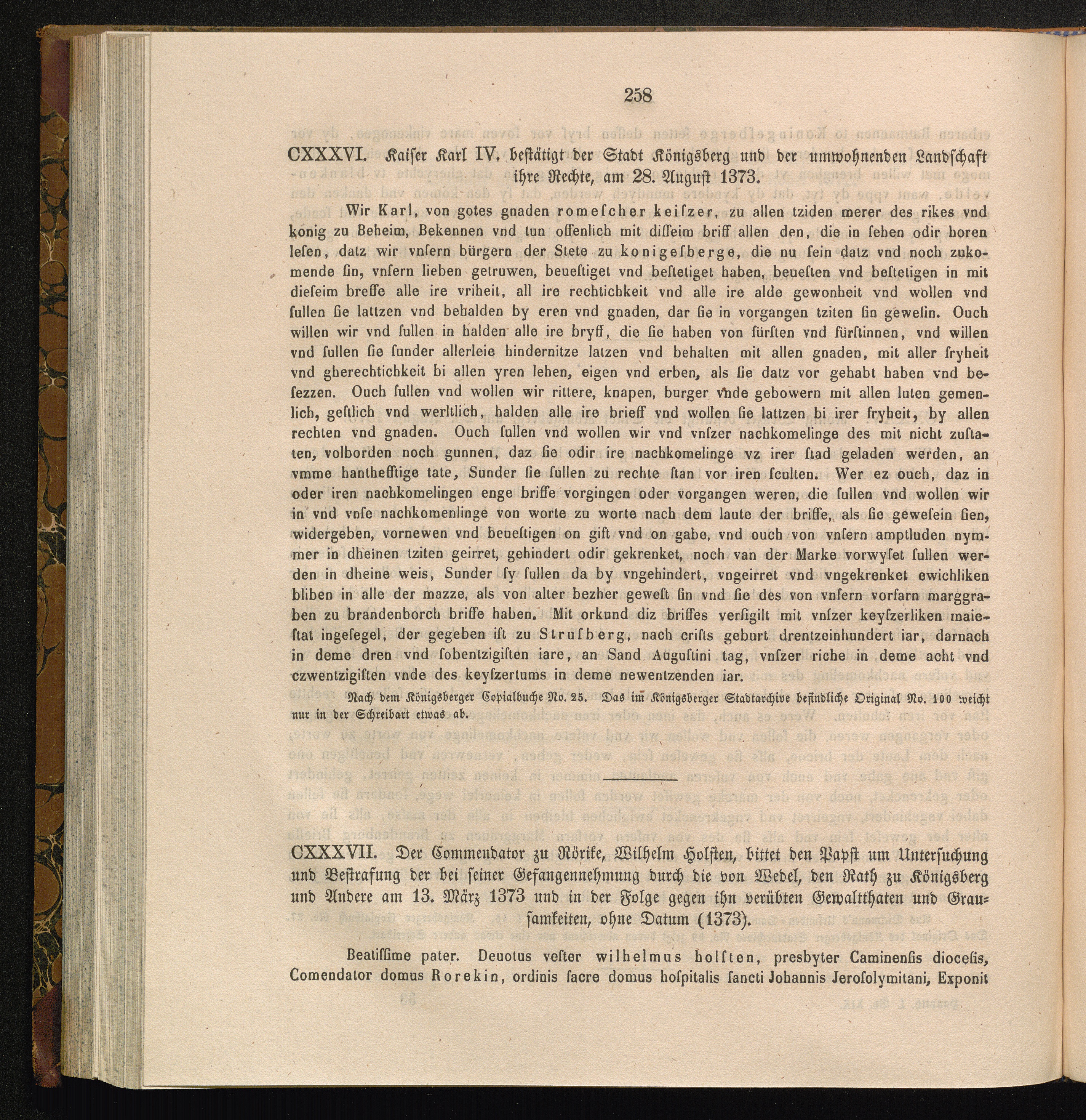 CXXXVI. Kaiser Karl IV. bestätigt der Stadt Königsberg und der umwohnenden Landschaft[...]