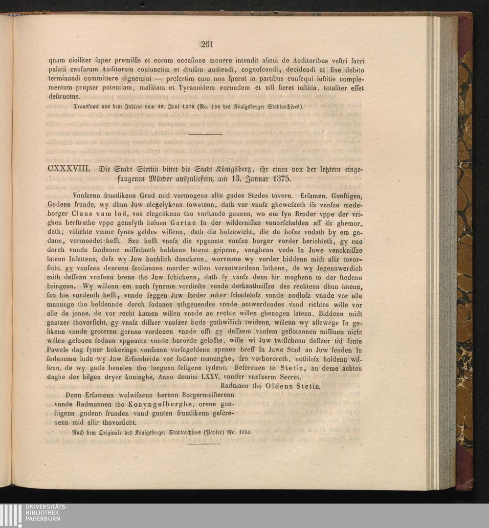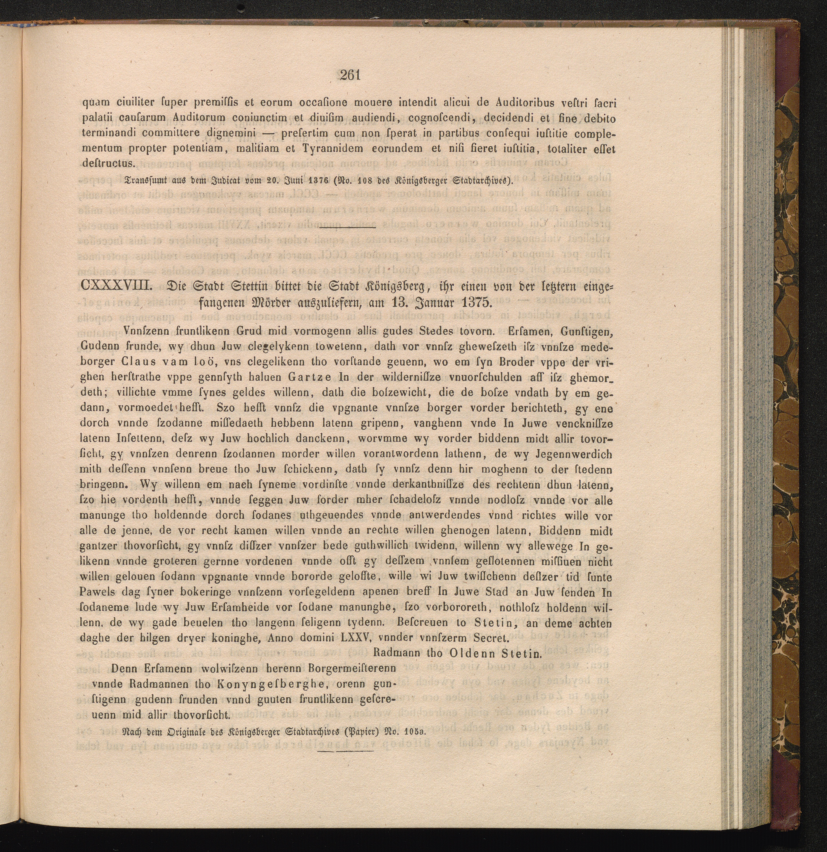 CXXXVIII. Die Stadt Stettin bittet die Stadt Königsberg, ihr einen von der letztern[...]