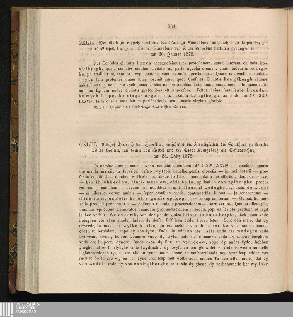 CXLII. Der Rath zu Lippehne erklärt, den Rath zu Königsberg ungemahnt zu lassen wegen[...]