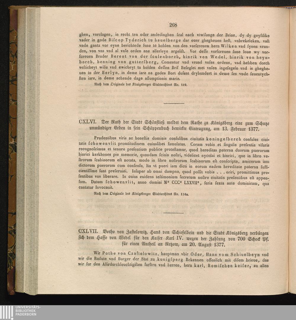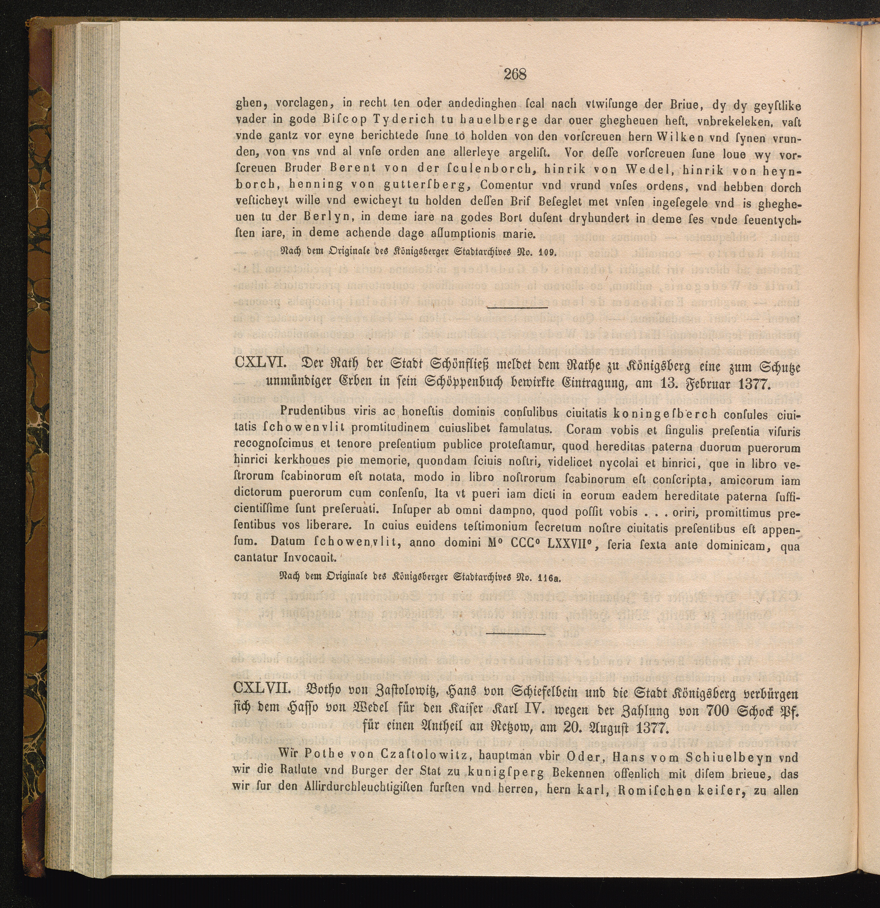 CXLVI. Der Rath der Stadt Schönfließ meldet dem Rathe zu Königsberg eine zum Schutze[...]