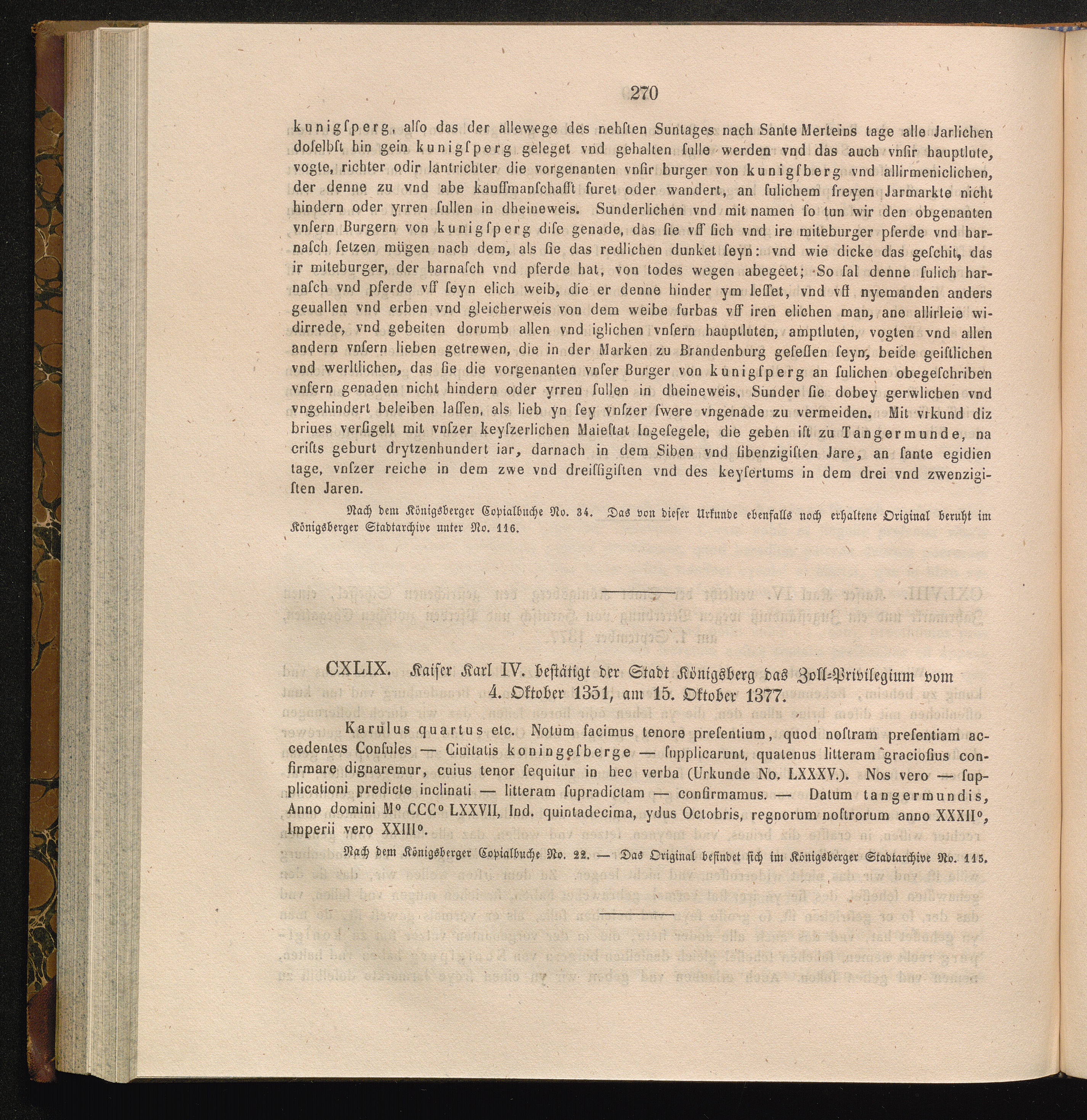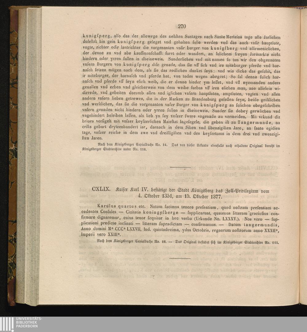 CXLIX. Kaiser Karl IV. bestätigt der Stadt Königsberg das Zoll-Privilegium vom 4.[...]