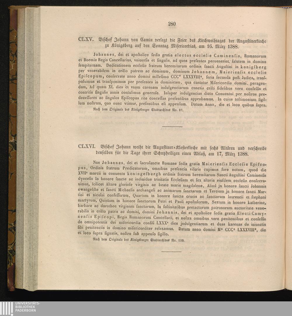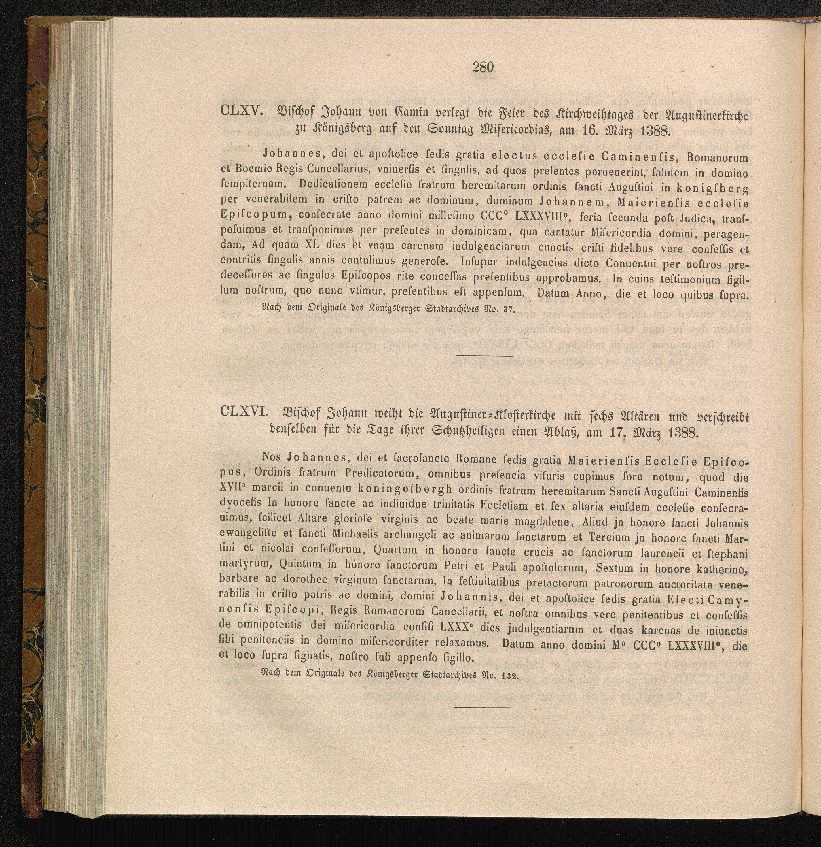 CLXV. Bischof Johann von Camin verlegt die Feier des Kirchweihtages der Augustinerkirche[...]