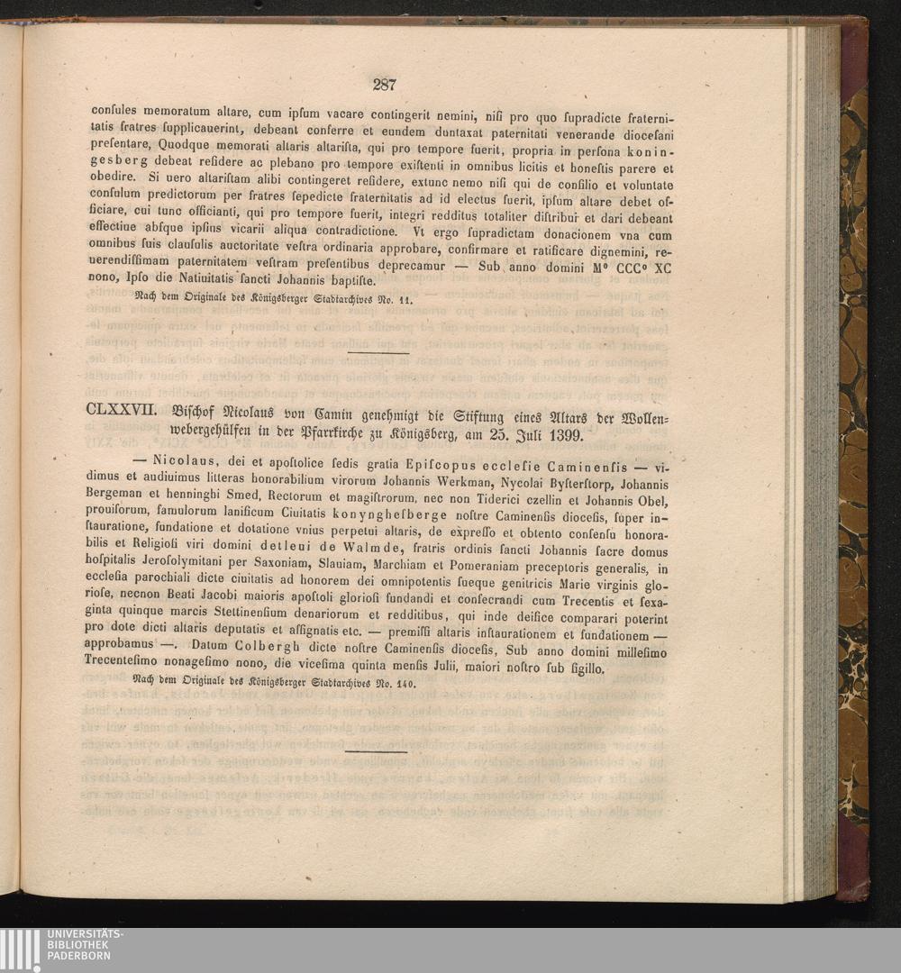 CLXXVII. Bischof Nicolaus von Camin genehmigt die Stiftung eines Altars der Wollenwebergehülfen[...]