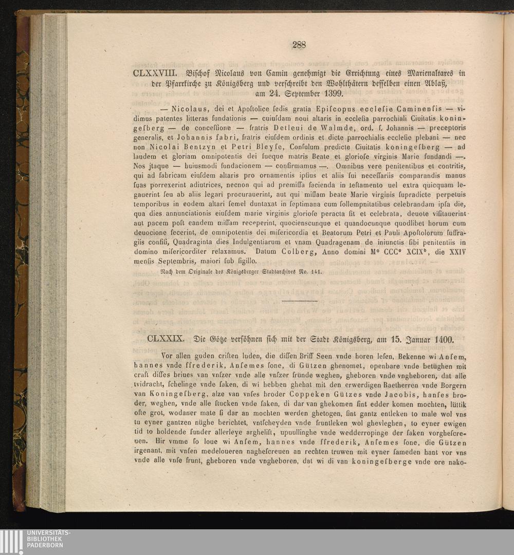 CLXXVIII. Bischof Nicolaus von Camin genehmigt die Errichtung eines Marienaltares[...]