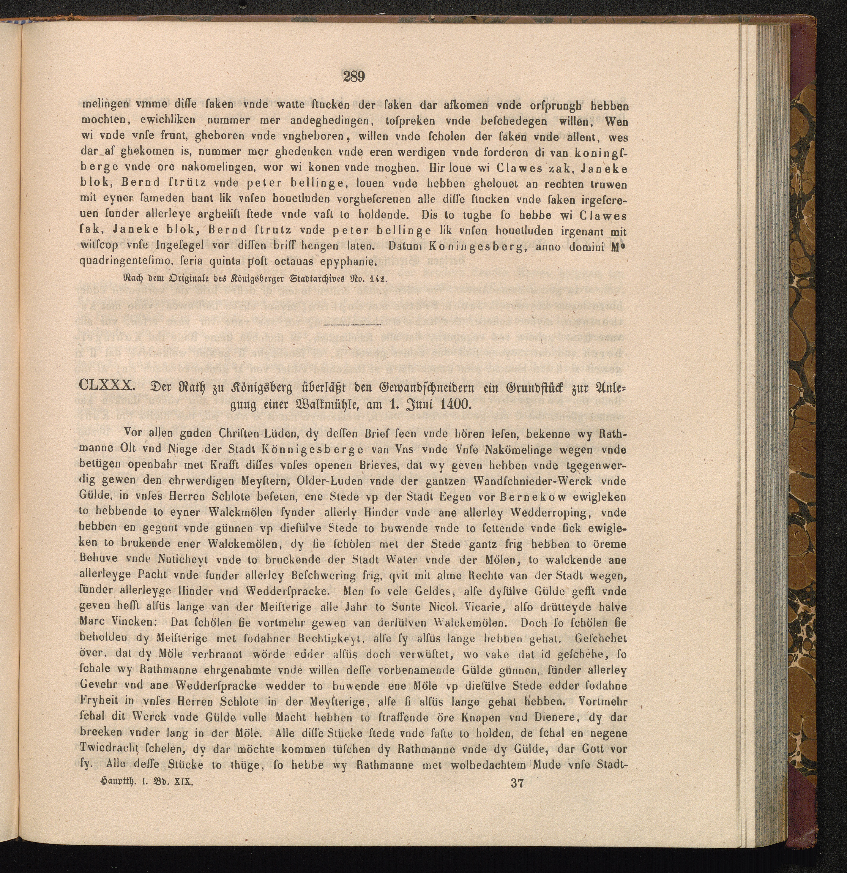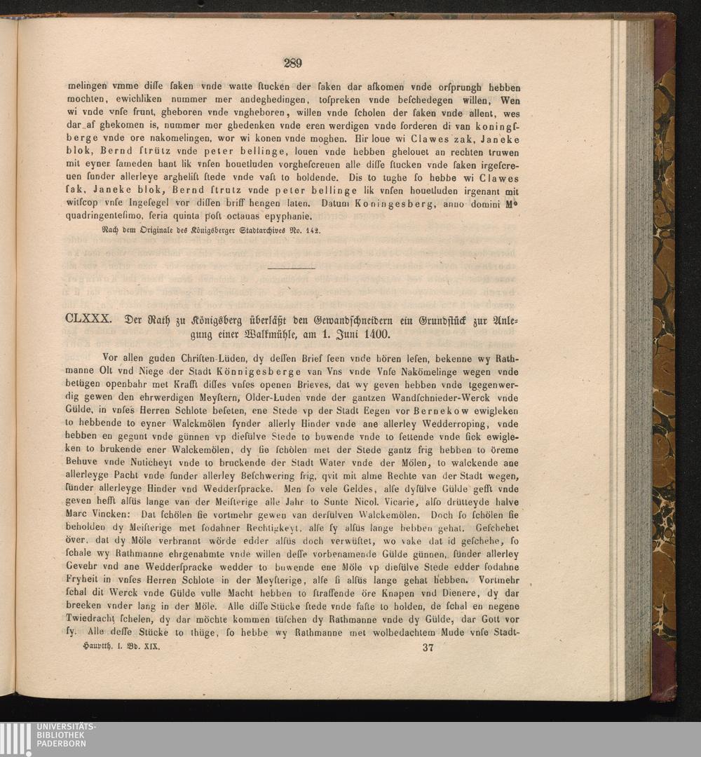 CLXXX. Der Rath zu Königsberg überläßt den Gewandschneidern ein Grundstück zur Anlegung[...]