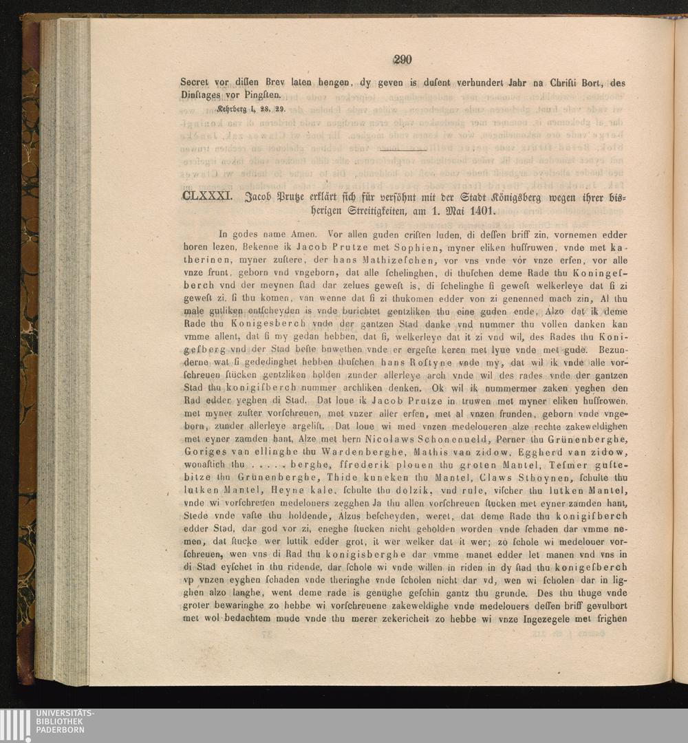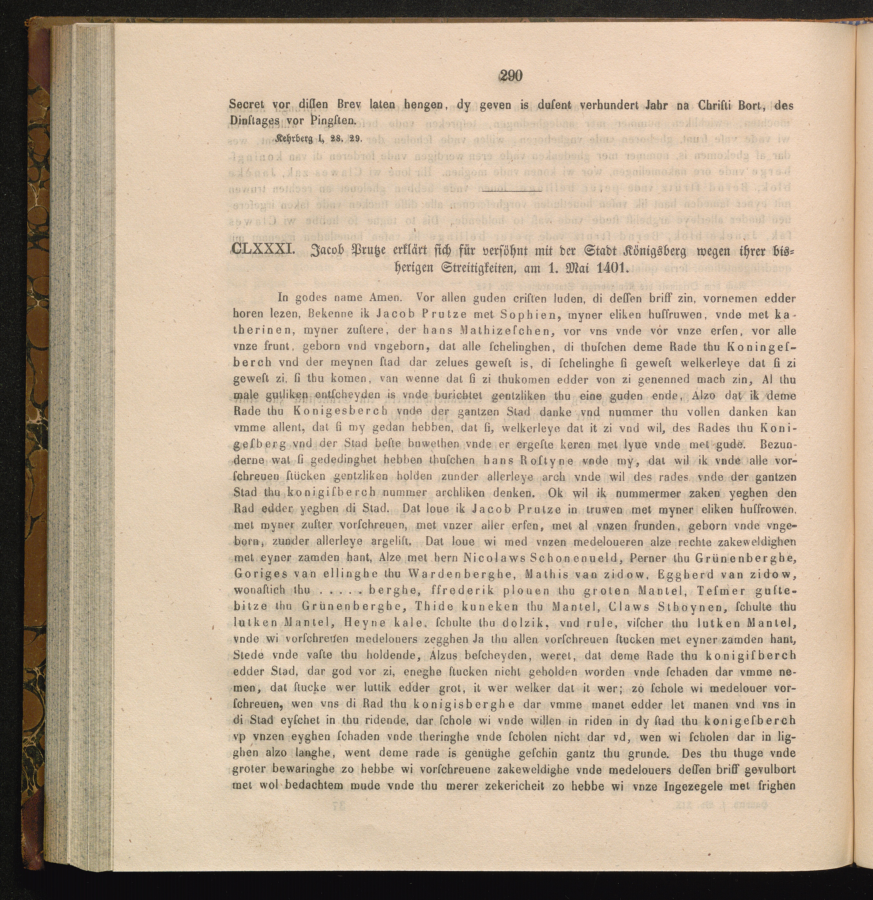 CLXXXI. Jacob Prutze erklärt sich für versöhnt mit der Stadt Königsberg wegen ihrer[...]