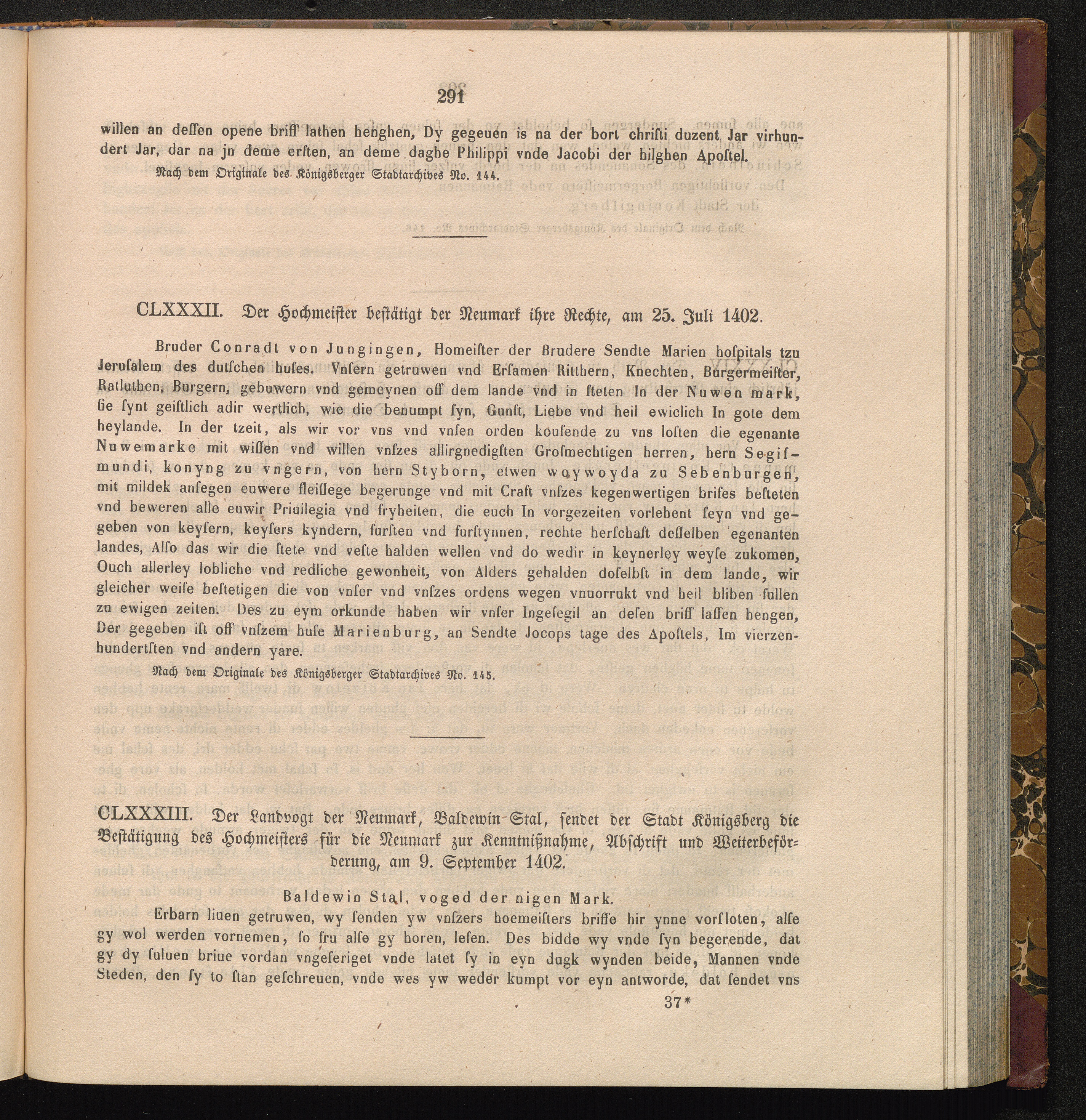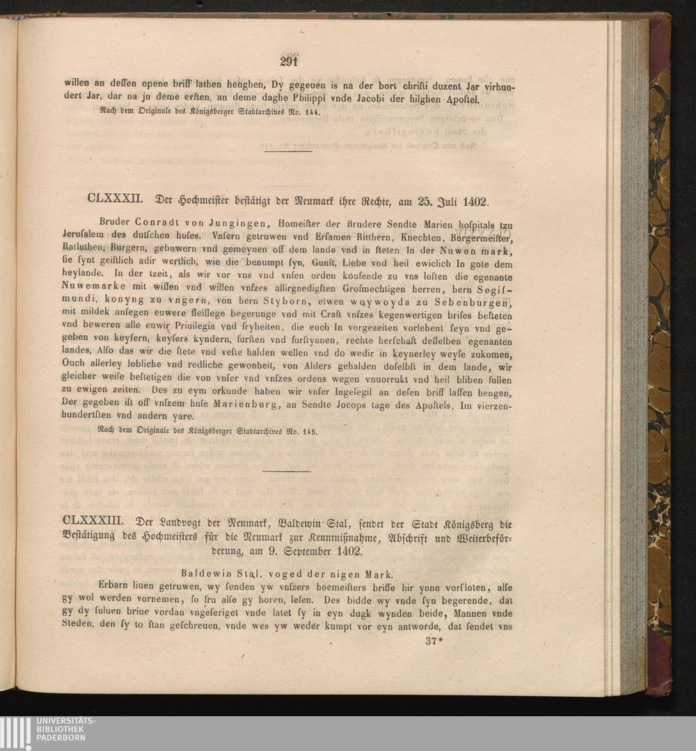 CLXXXII. Der Hochmeister bestätigt der Neumark ihre Rechte, am 25. Juli 1402.