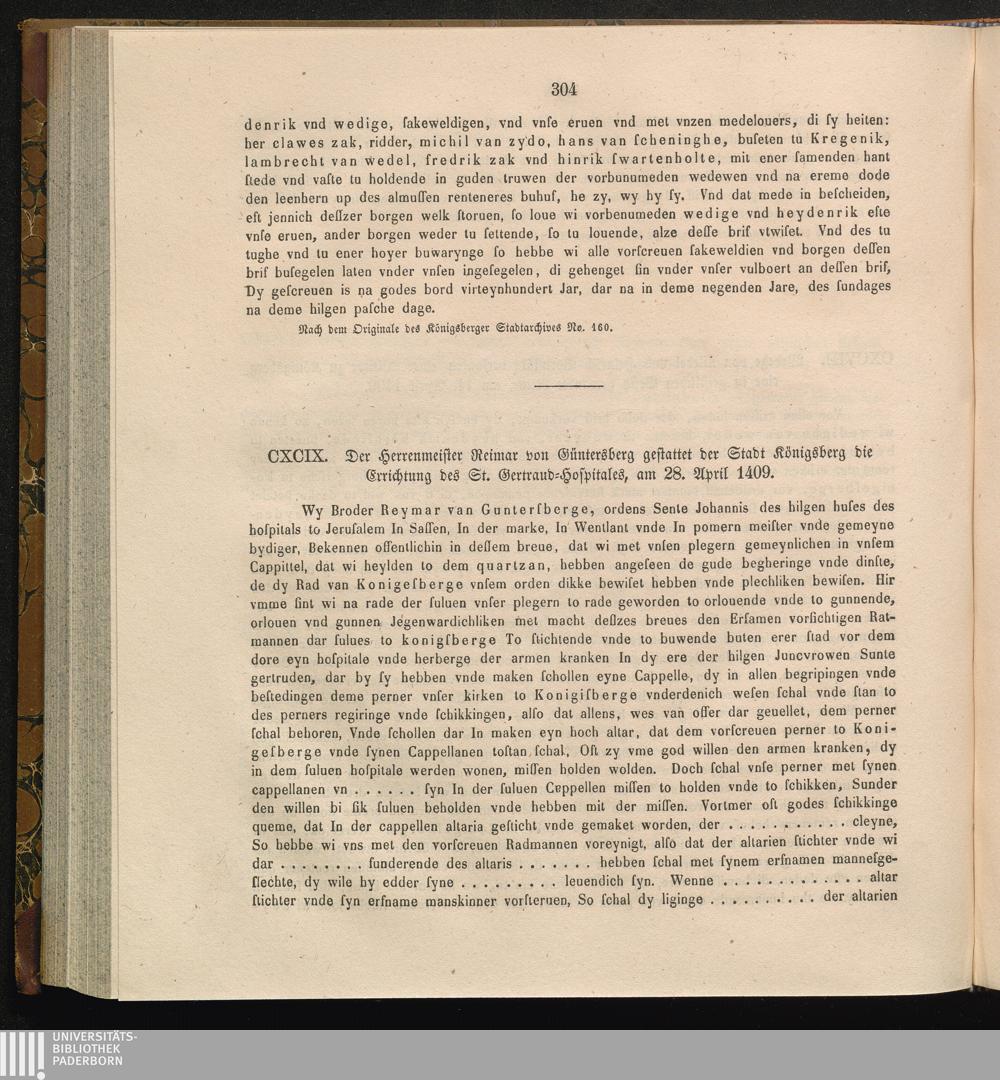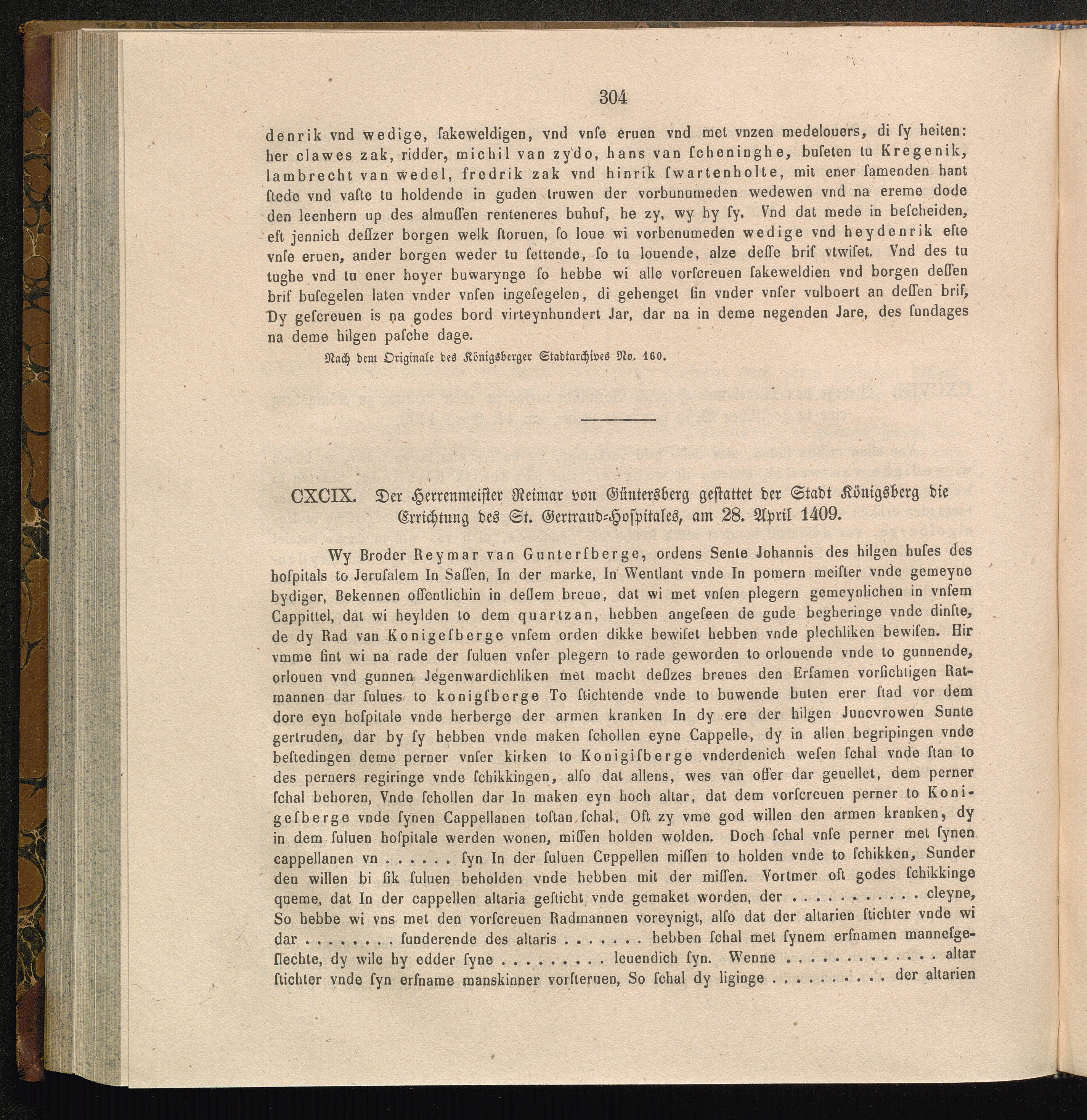 CXCIX. Der Herrenmeister Reimar von Güntersberg gestattet der Stadt Königsberg die[...]