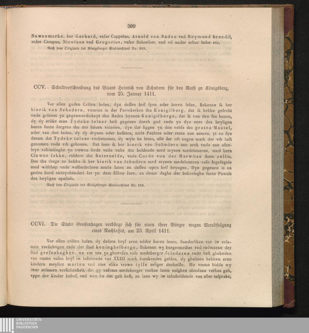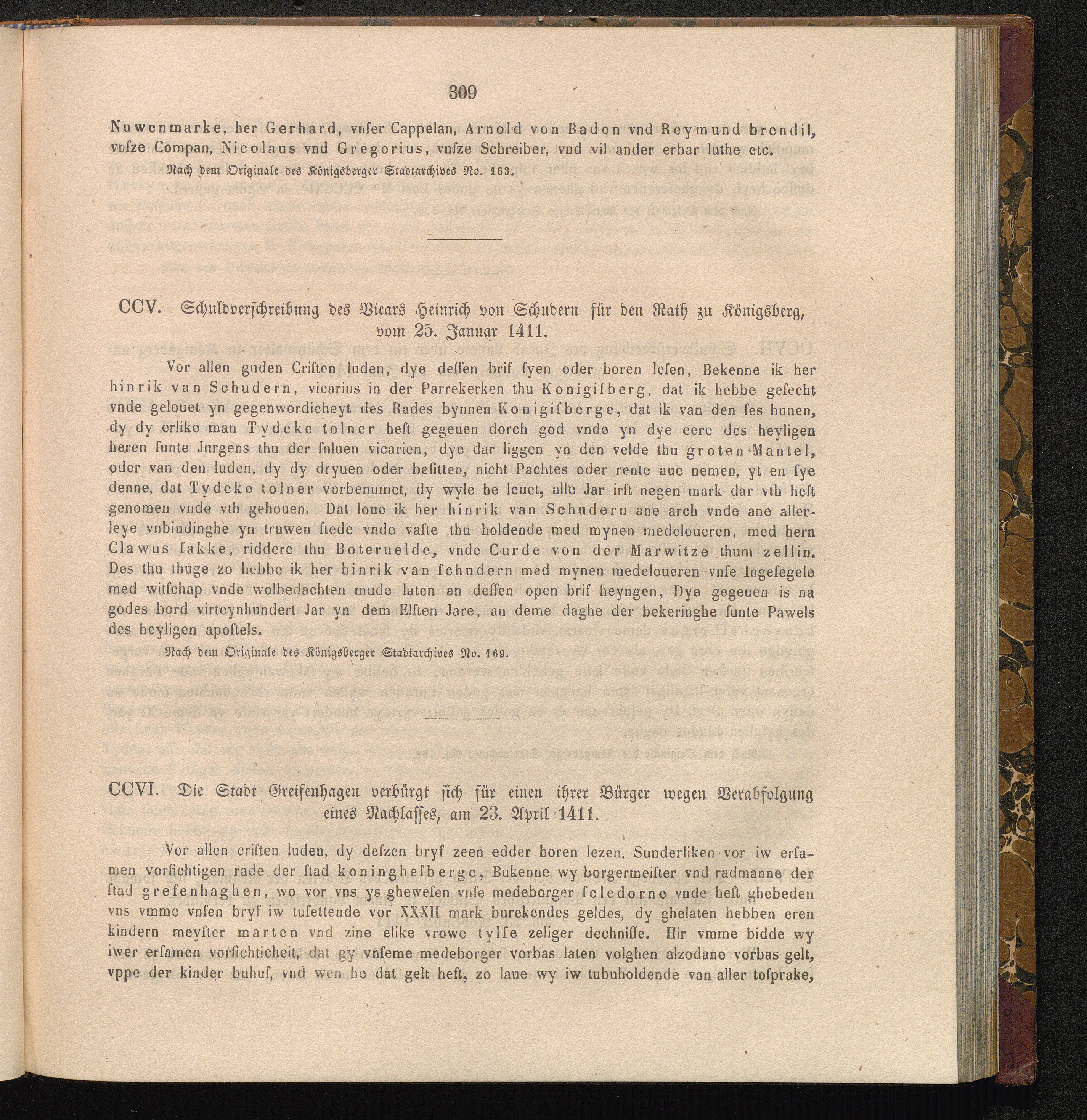 CCV. Schuldverschreibung des Vicars Heinrich von Schudern für den Rath zu Königsberg,[...]