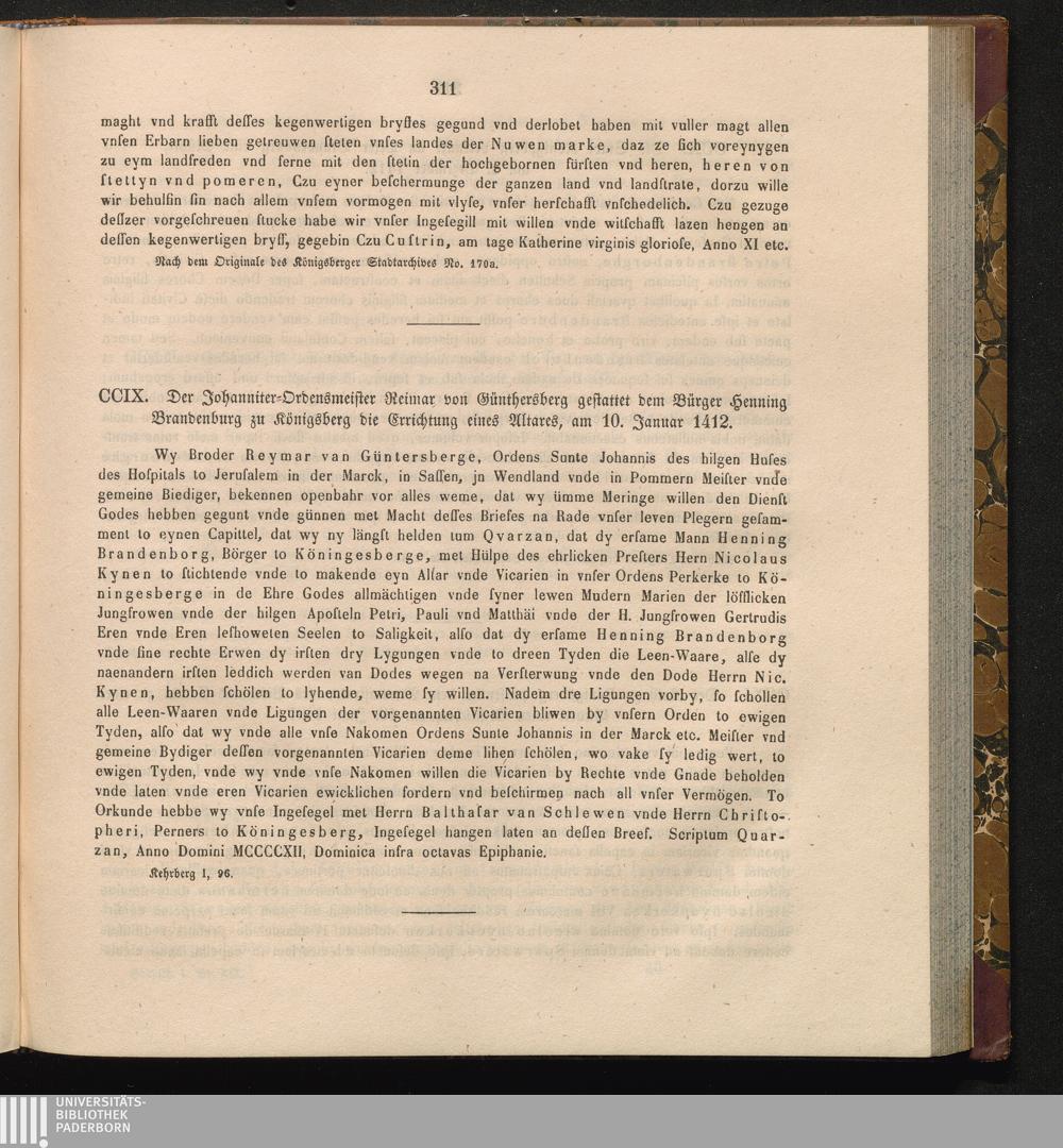 CCIX. Der Johanniter - Ordensmeister Reimar von Günthersberg gestattet dem Bürger[...]