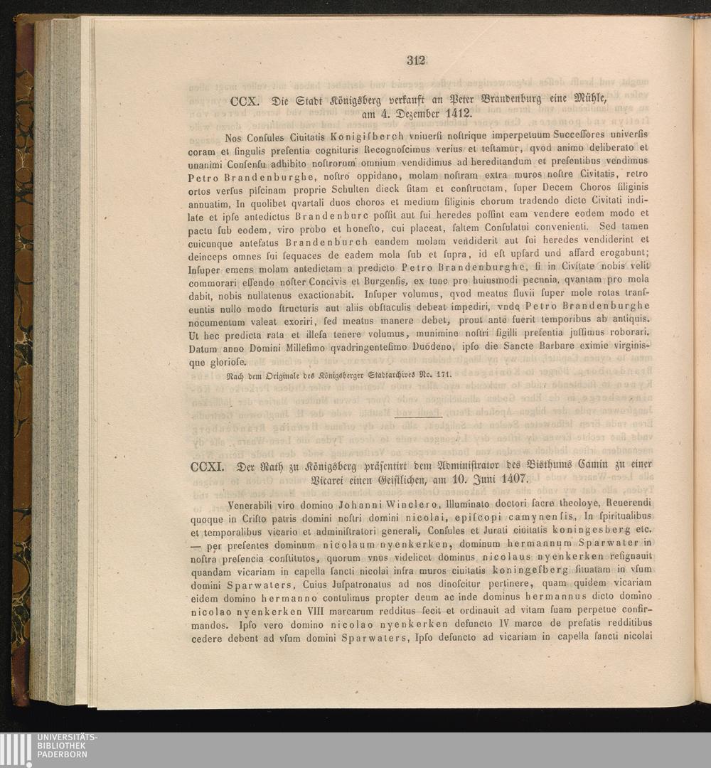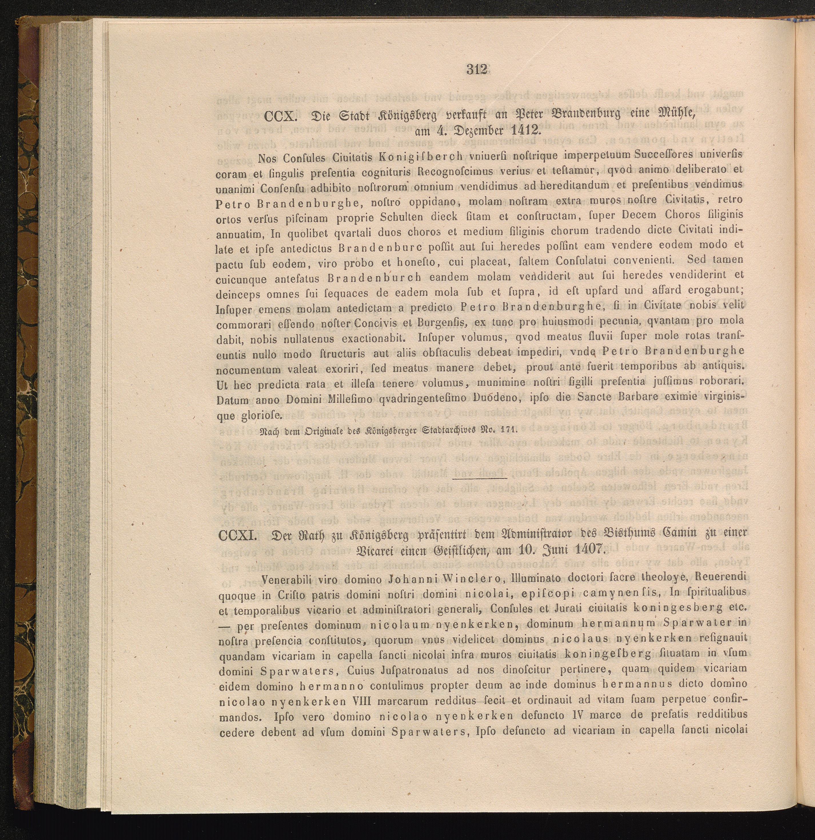 CCX. Die Stadt Königsberg verkauft an Peter Brandenburg eine Mühle, am 4. Dezember[...]