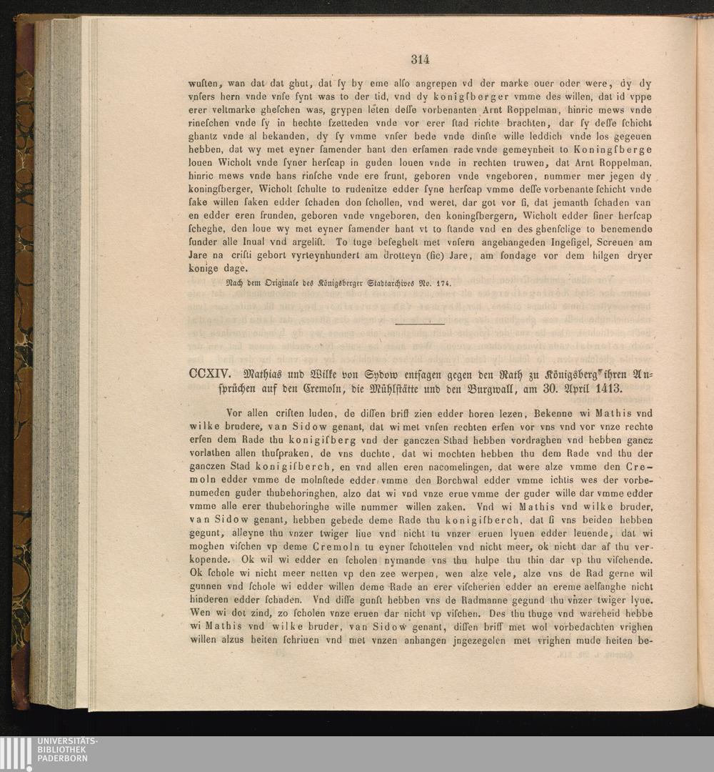 CCXIV. Mathias und Wilke von Sydow entsagen gegen den Rath zu Königsberg ihren Ansprüchen[...]