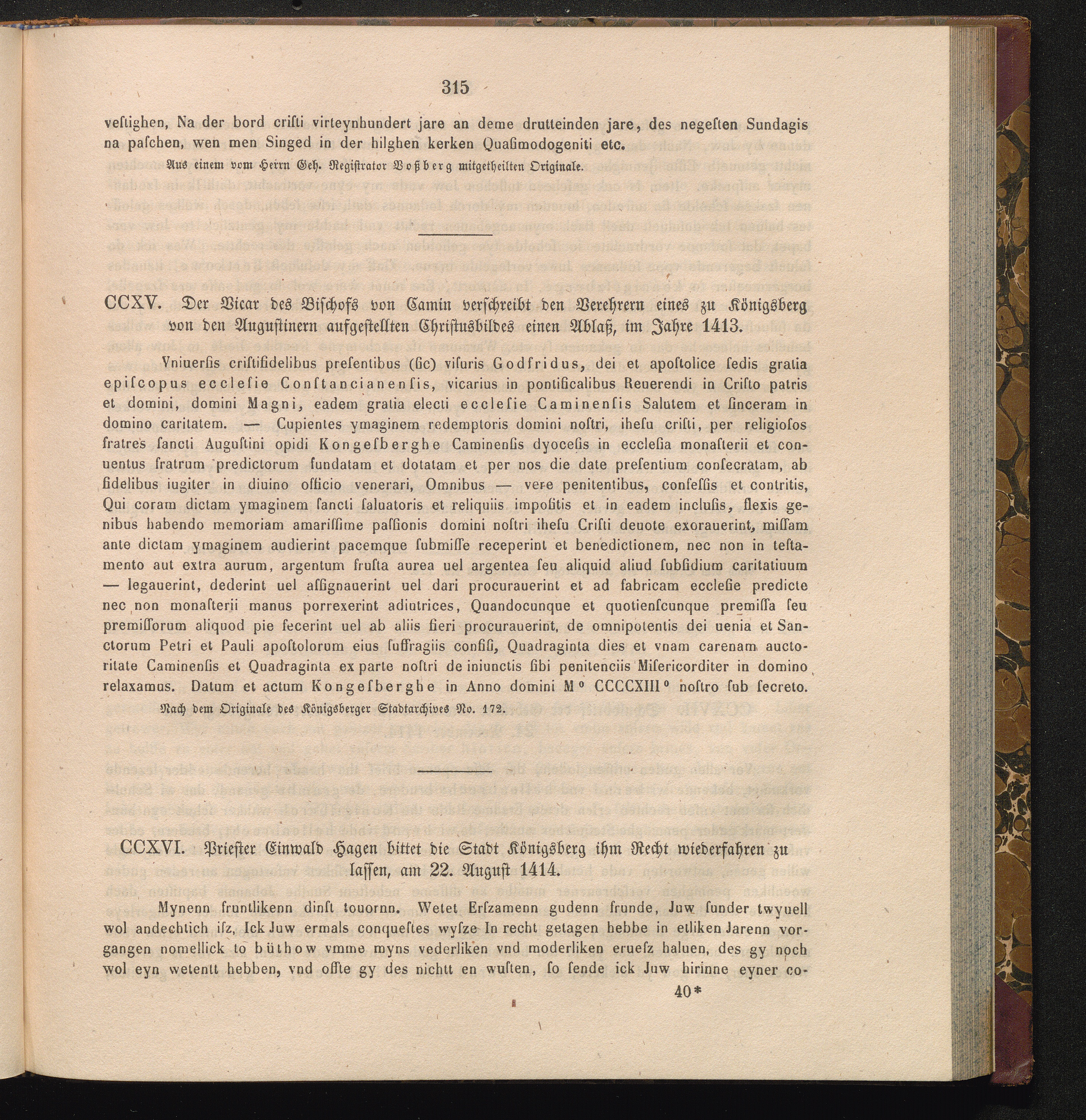 CCXV. Der Vicar des Bischofs von Camin verschreibt den Verehrern eines zu Königsberg[...]