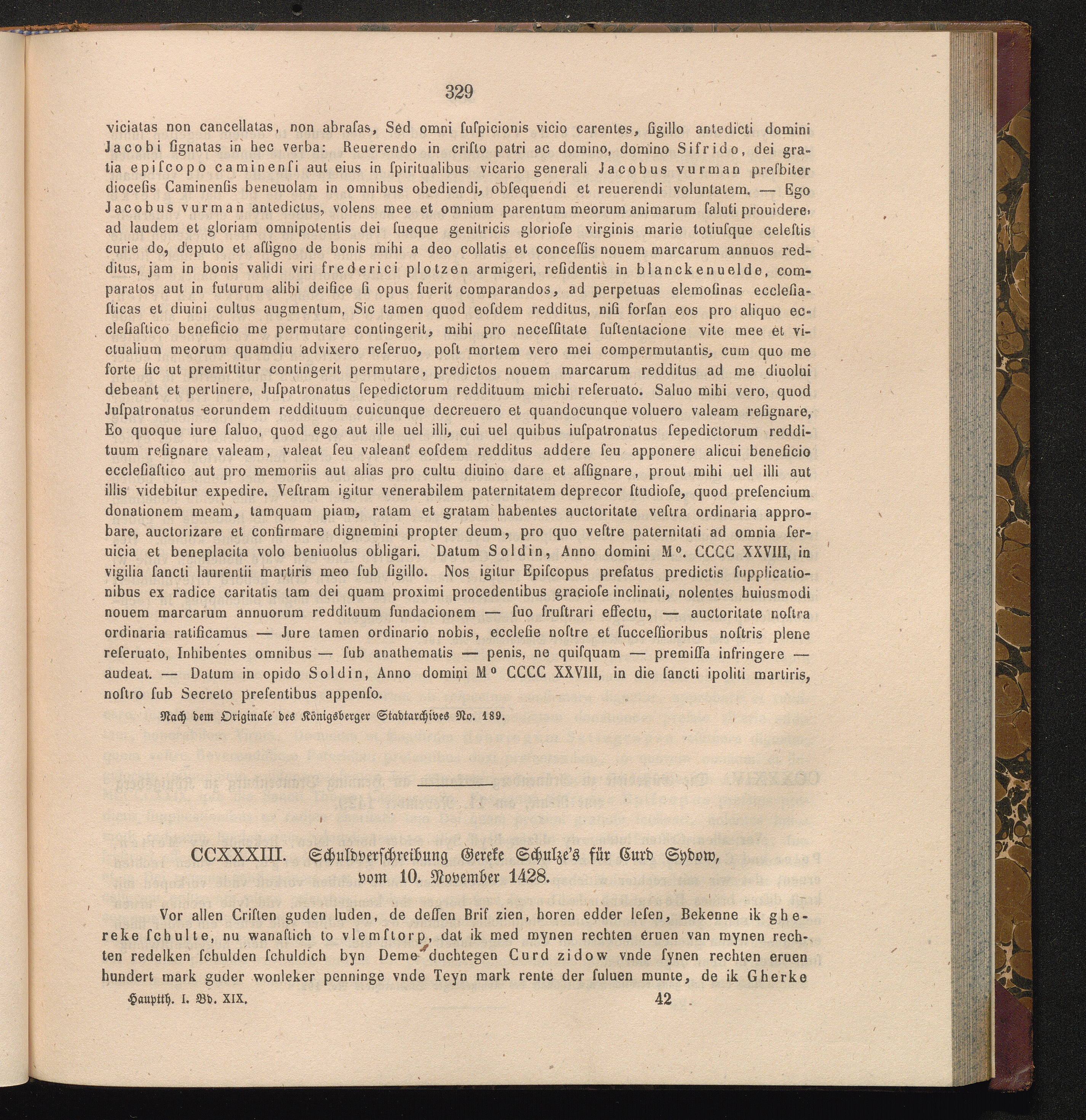 CCXXXIII. Schuldverschreibung Gereke Schulze's für Curd Sydow, vom 10. November [...]