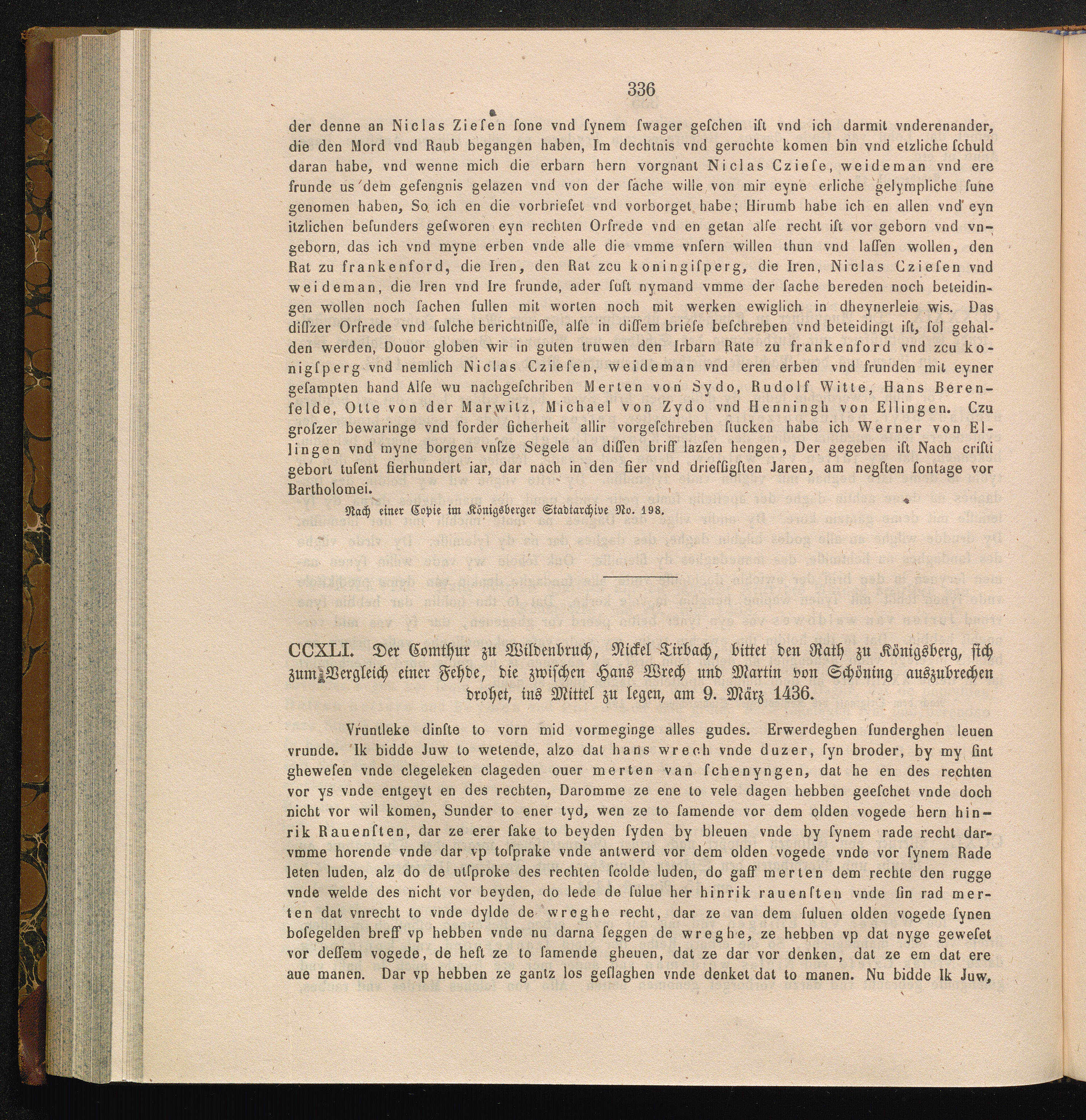 CCXLI. Der Comthur zu Wildenbruch, Rickel Tirbach, bittet den rath zu Königsberg,[...]