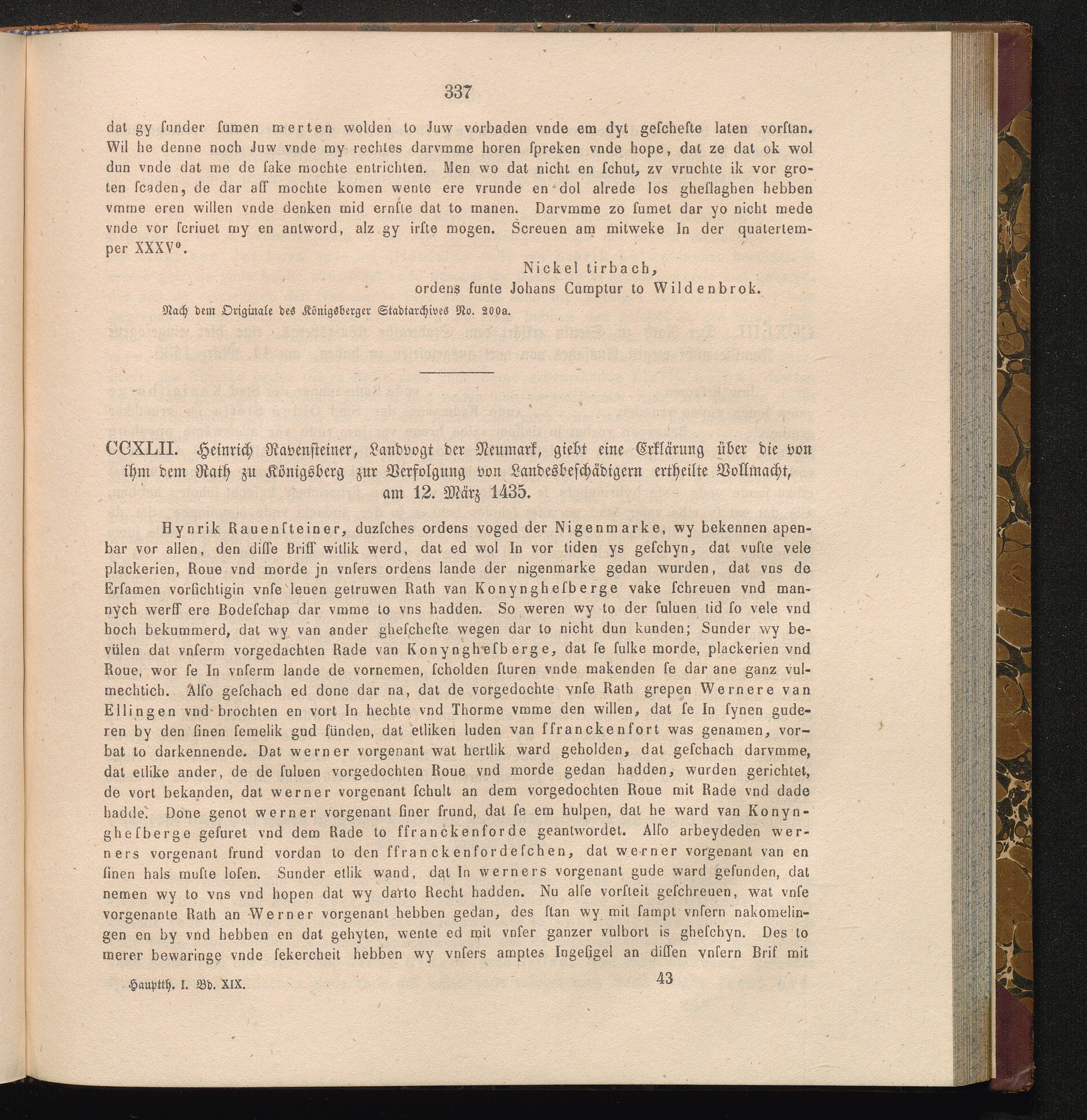 CCXLII. Heinrich Ravensteiner, Landvogt der Neumark, giebt eine Erklärung über die[...]