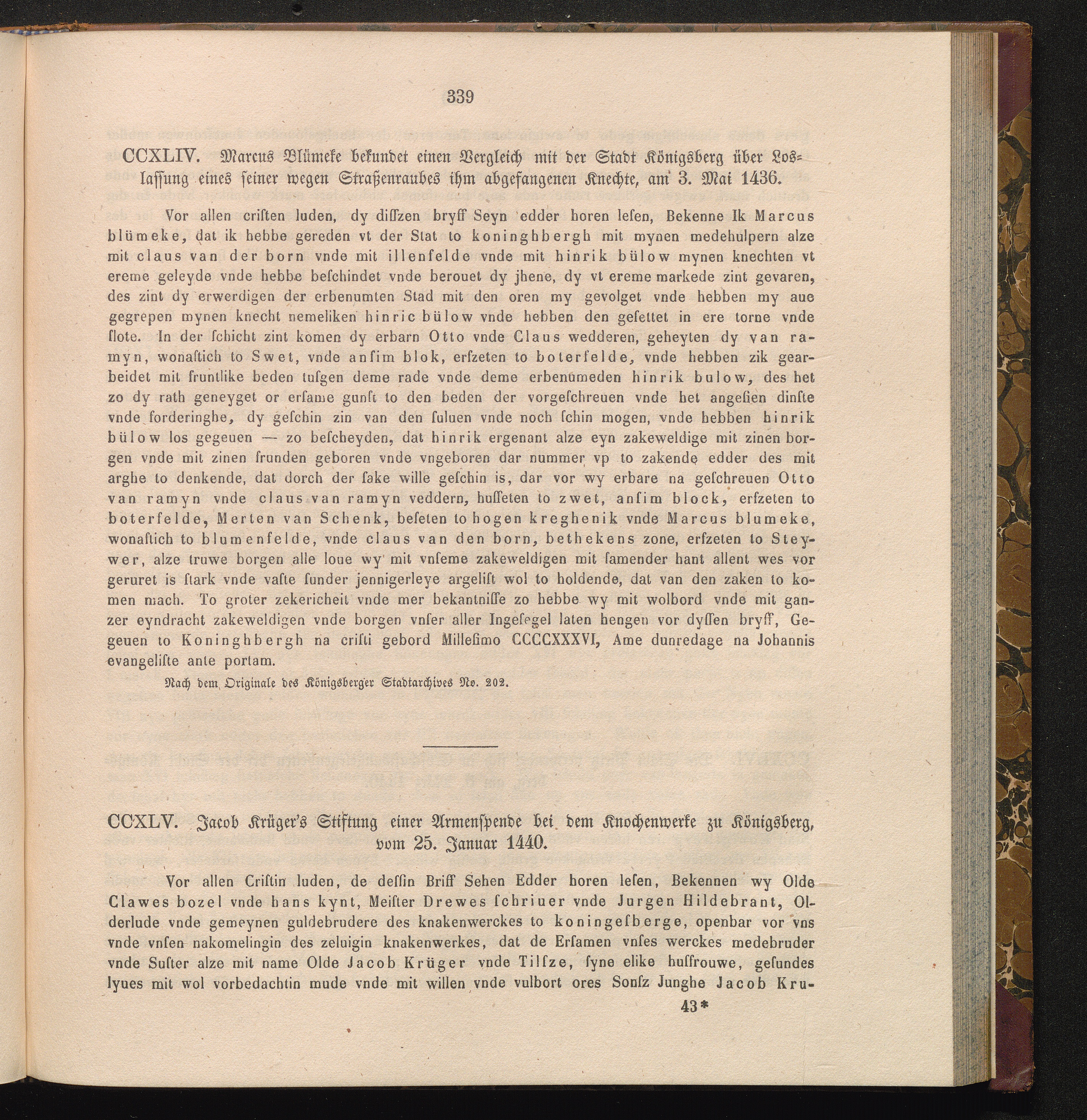 CCXLIV. Marcus Blümeke bekundet einen Vergleich mit der Stadt Königsberg über Loslassung[...]