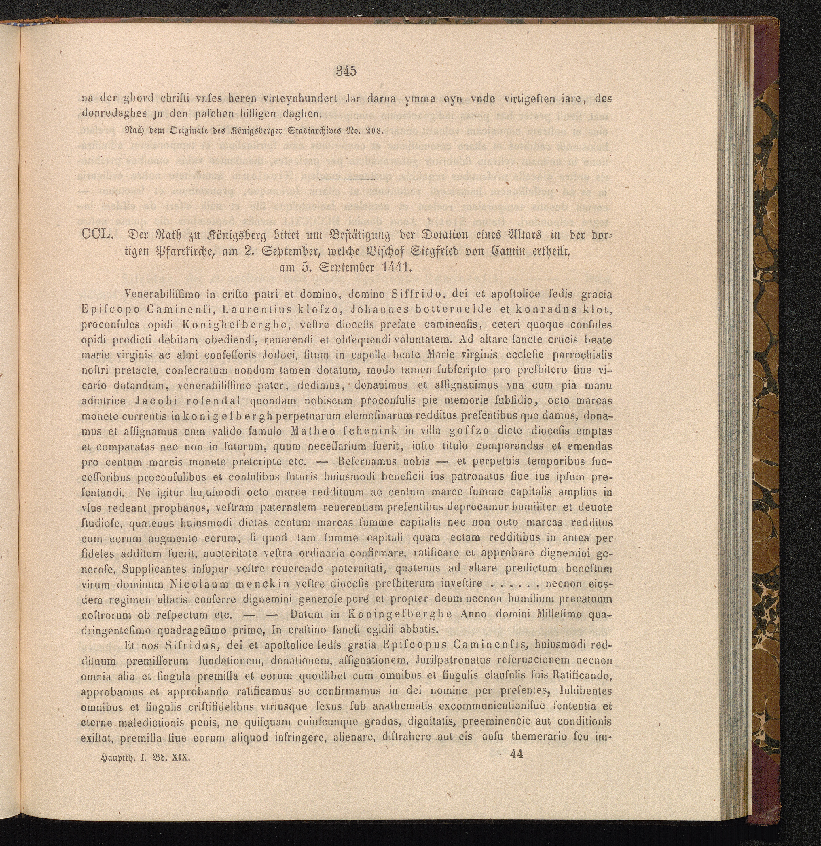 CCL. Der Rath zu Königsberg bittet um Bestätigung der Dotation eines Altars in der[...]