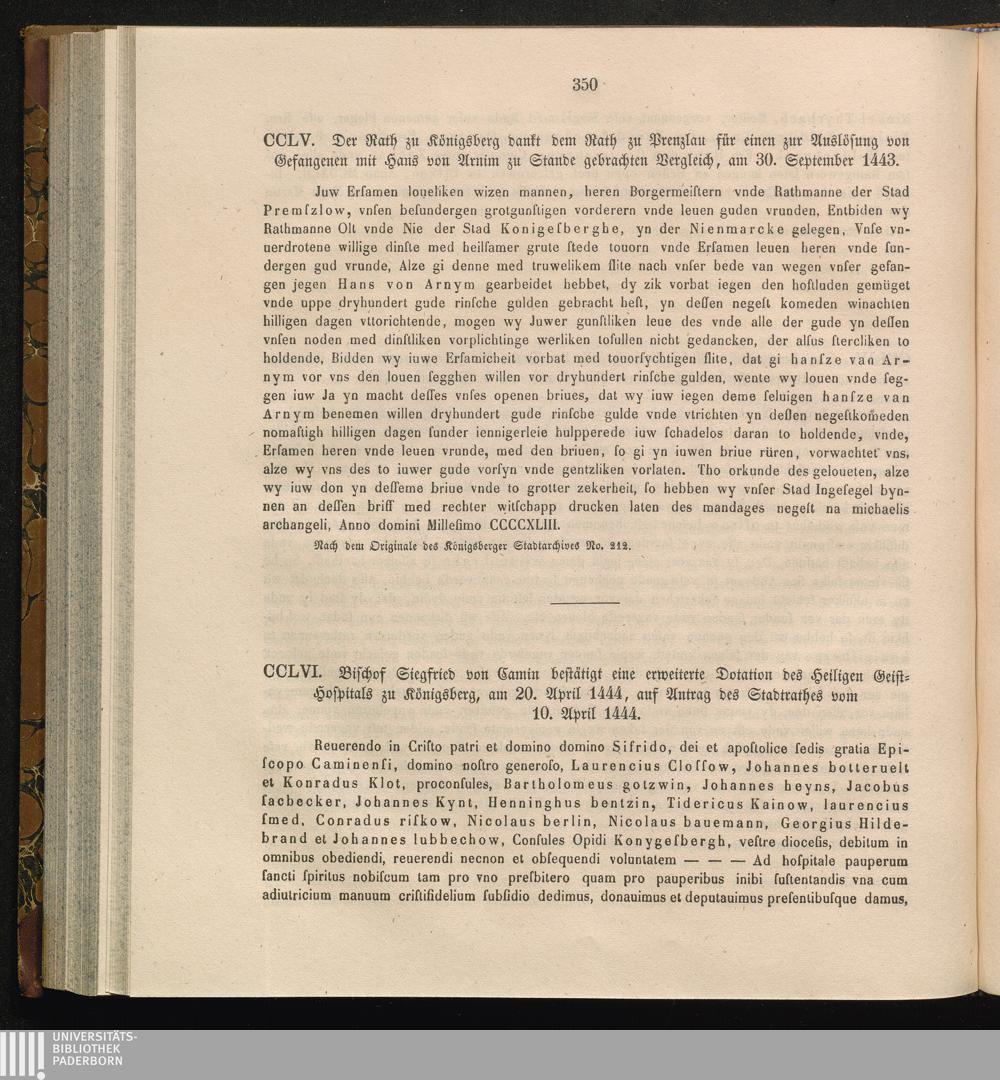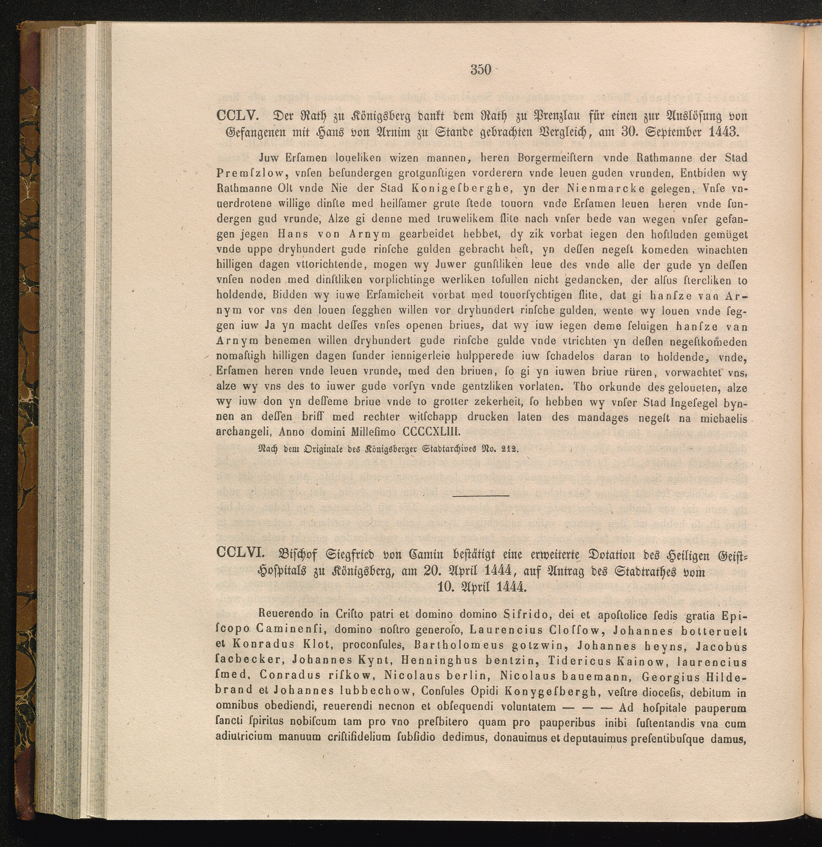 CCLV. Der Rath zu Königsberg dankt dem Rath zu Prenzlau für einen zur auslösung von[...]