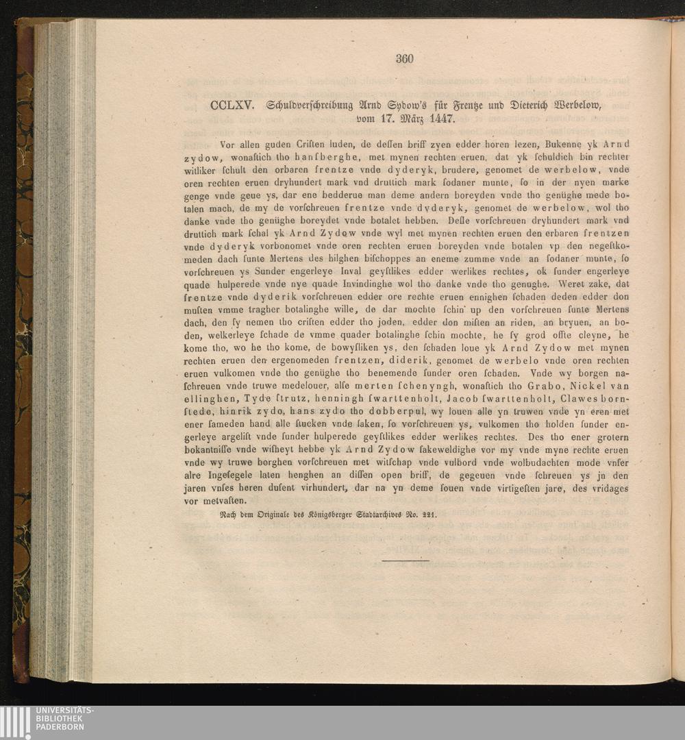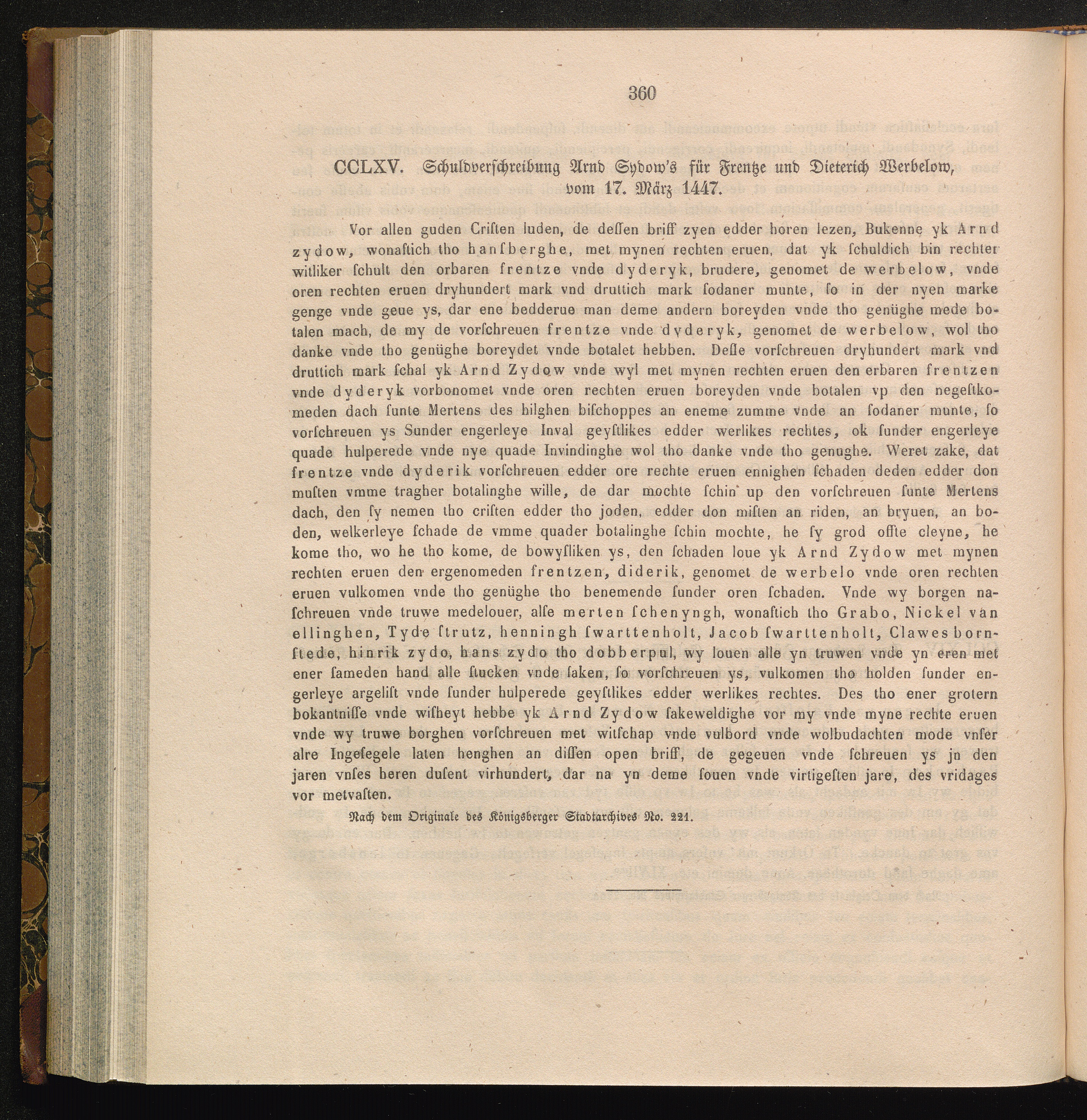 CCLXV. Schuldverschreibung Arnd und Sydow's für Freunde und Dieterich Werbelow, vom[...]