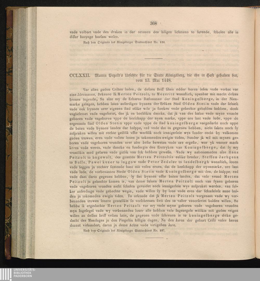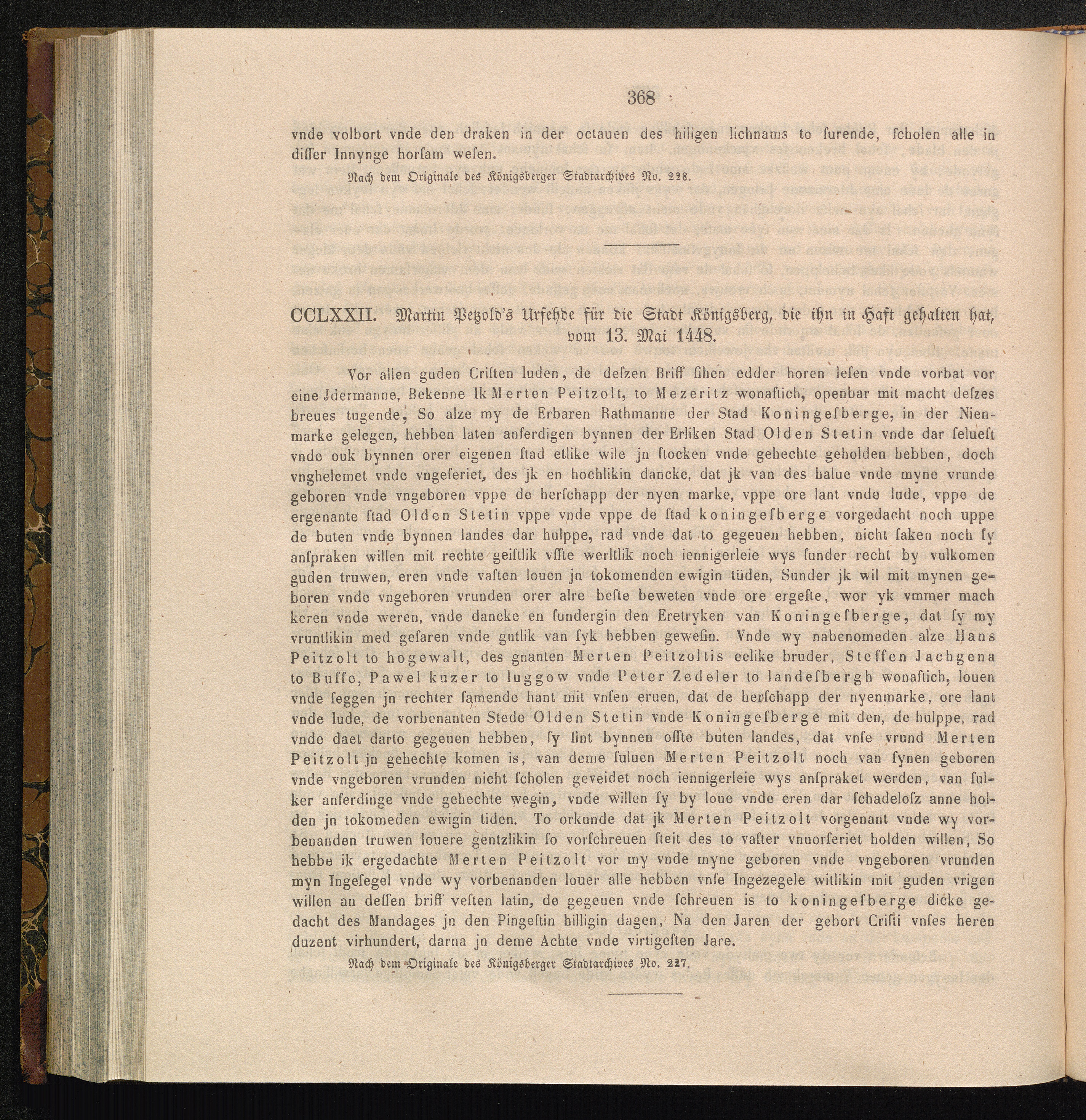 CCLXXII. Martin Petzold's Urfehde für die Stadt Königsberg, die ihn in Haft gehalten[...]