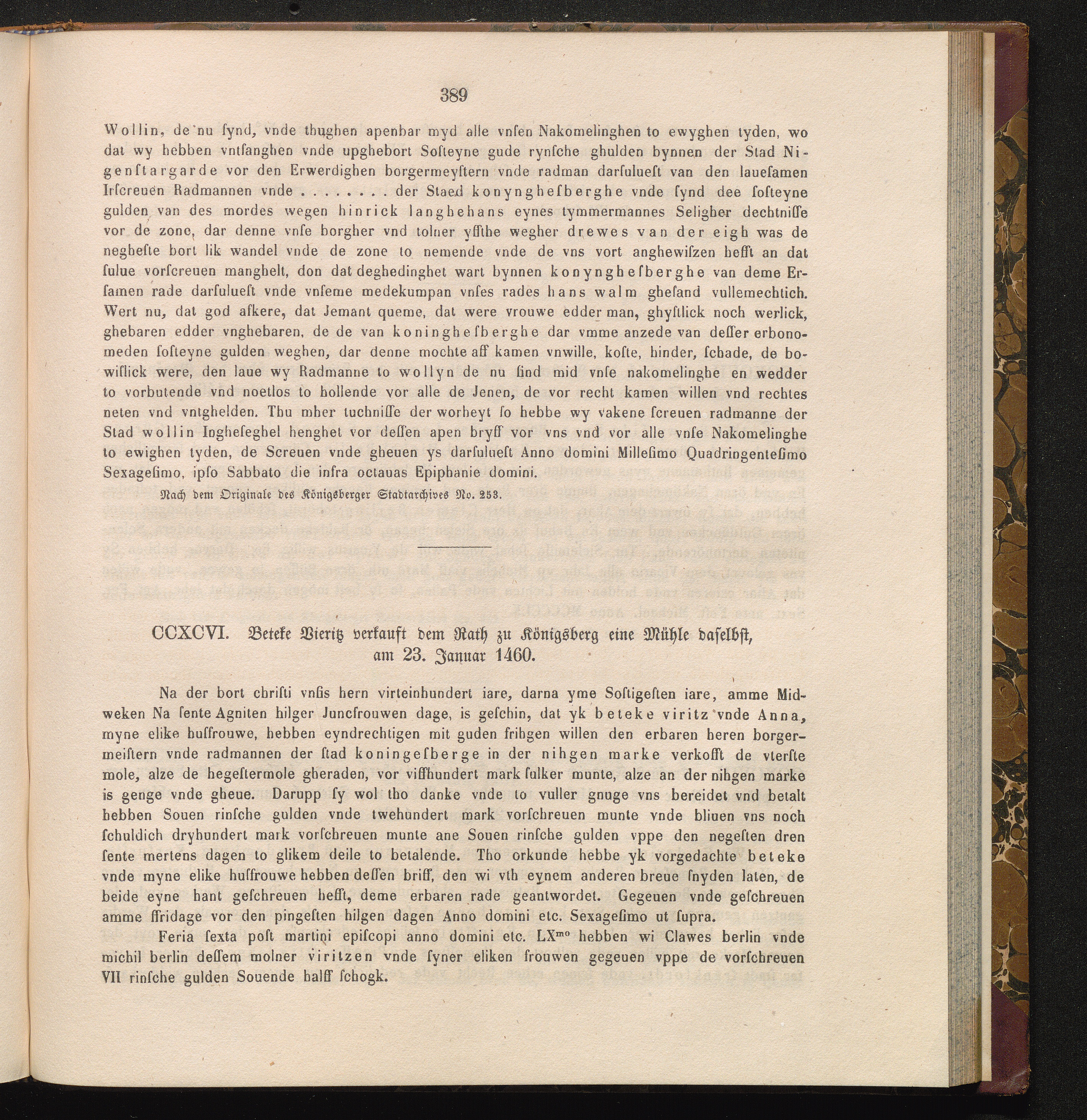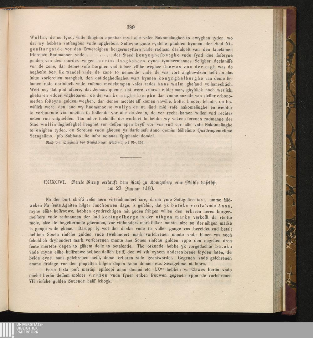 CCXCVI. Beteke Vieritz verkauft dem Rath zu Königsberg eine Mühle daselbst, am 23.[...]