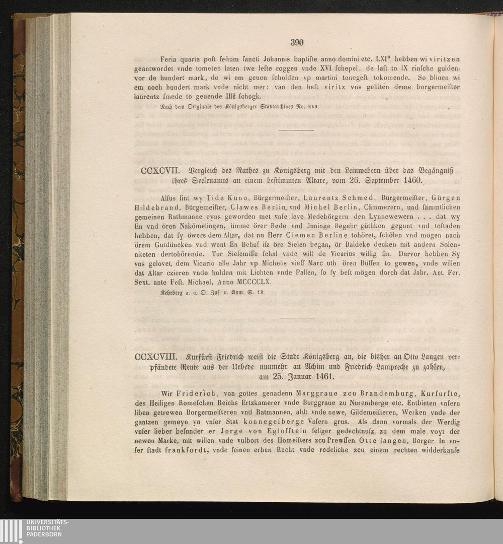CCXCVII. Vergleich des Rathes zu Königsberg mit den Leinwebern über das Begängniß[...]