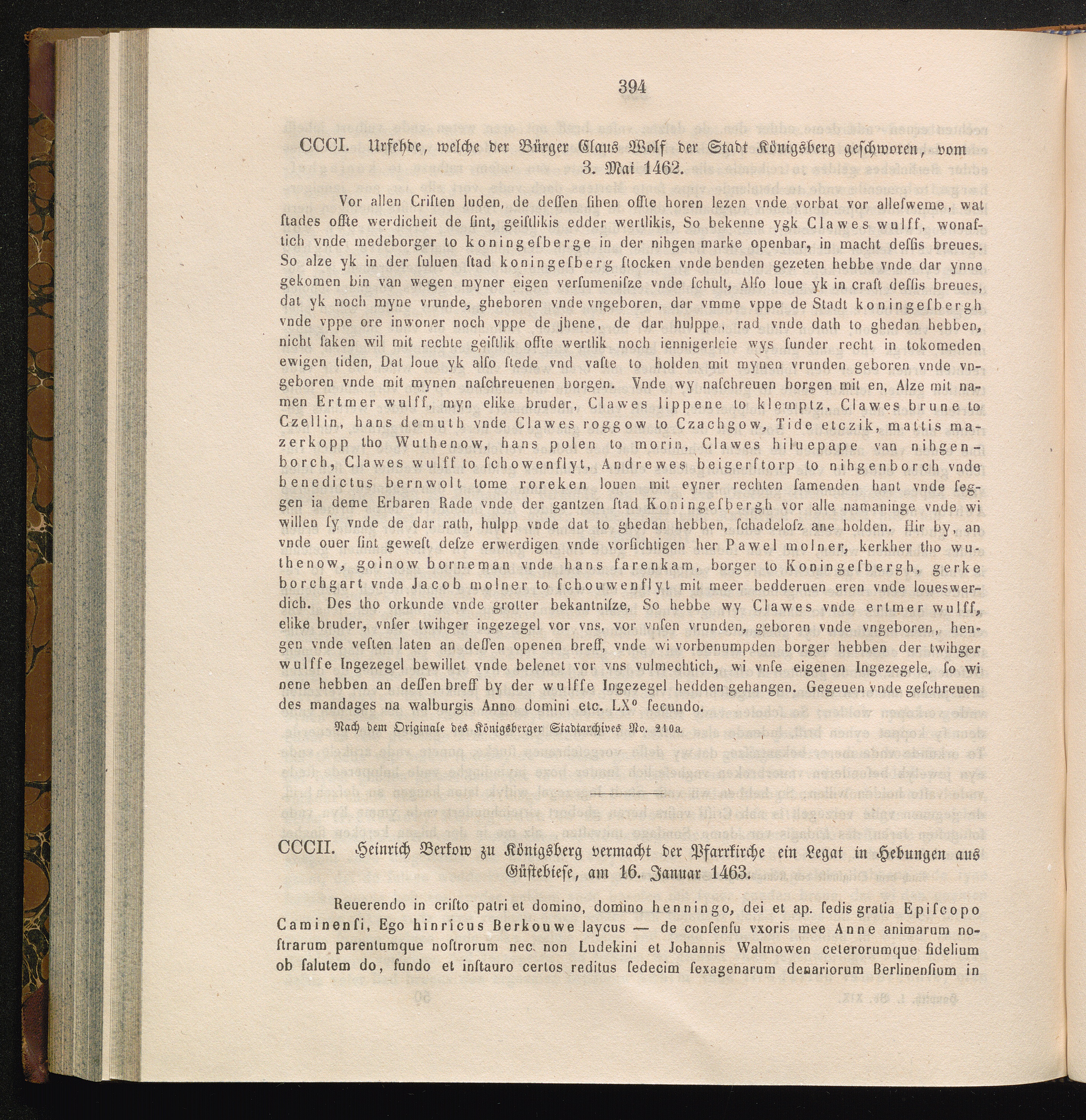 CCCI. Urfehde, welche der Bürger Claus Wolf der Stadt Königsberg geschworen, vom[...]