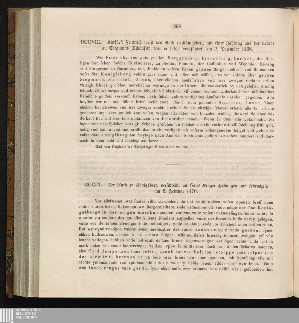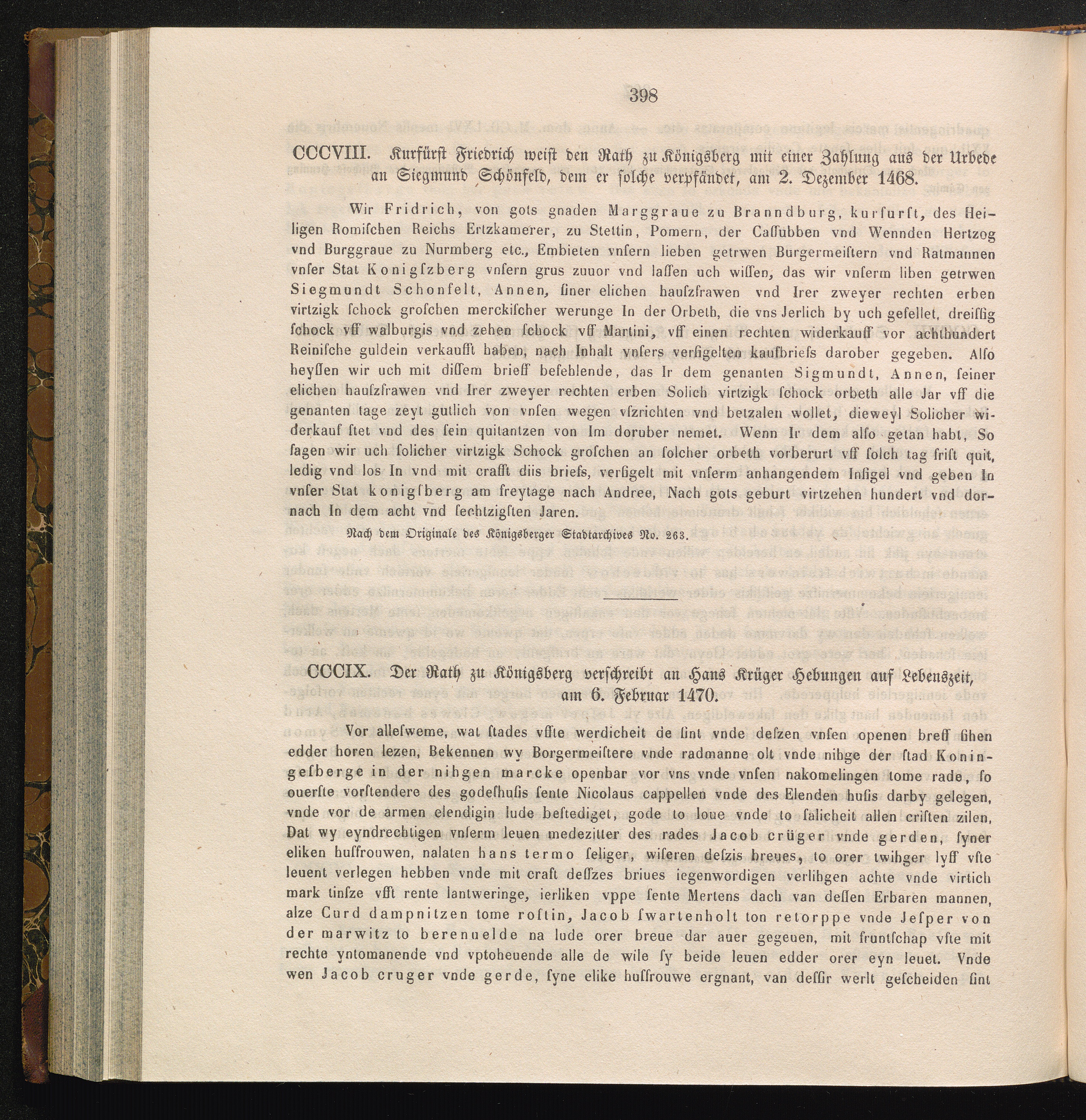 CCCVIII. Kurfürst Friedrich weist den Rath zu Königsberg mit einer Zahlung aus der[...]