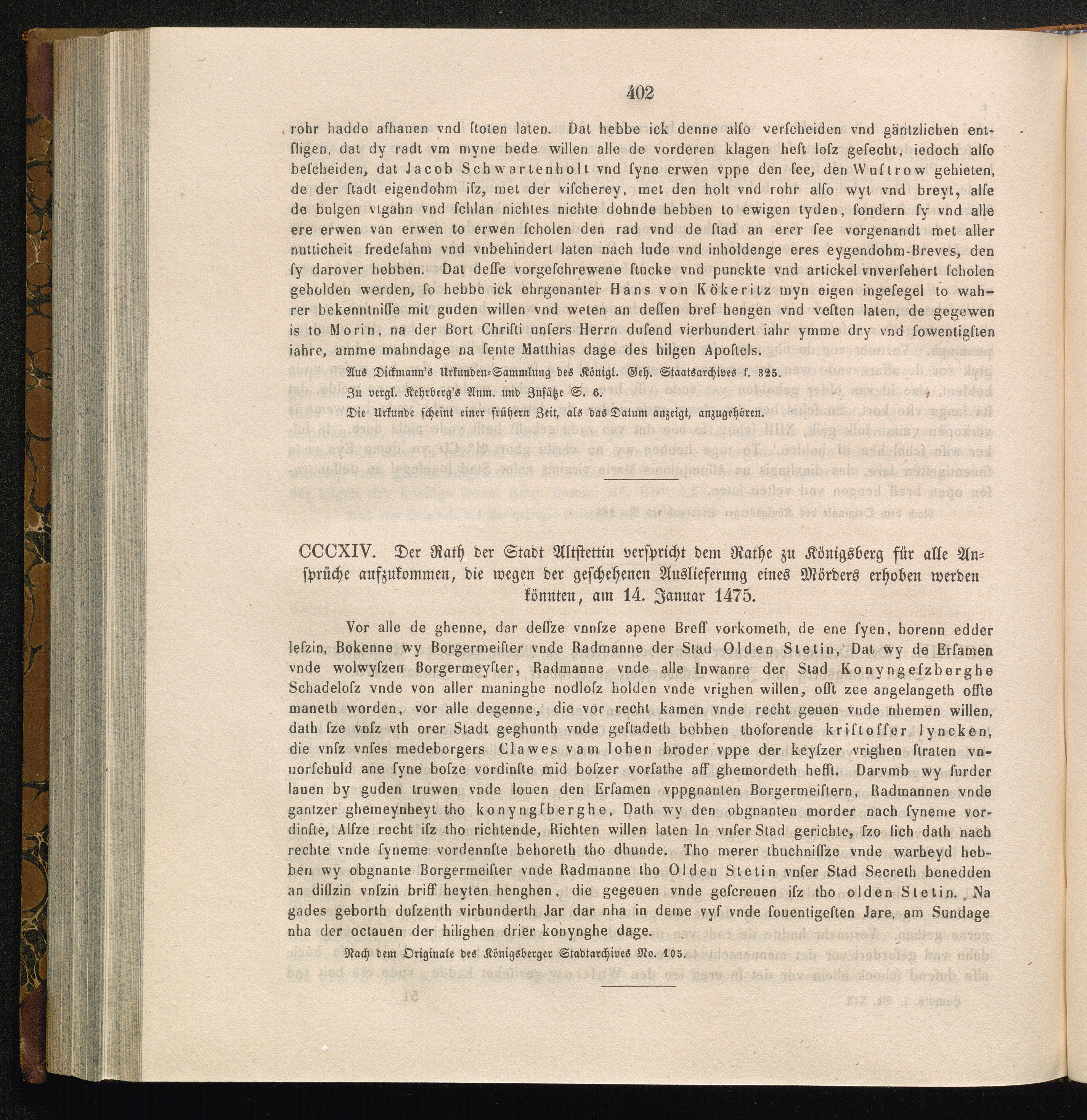 CCCXIV. Der Rath der Stadt Altstettin verspricht dem Rathe zu Königsberg für alle[...]
