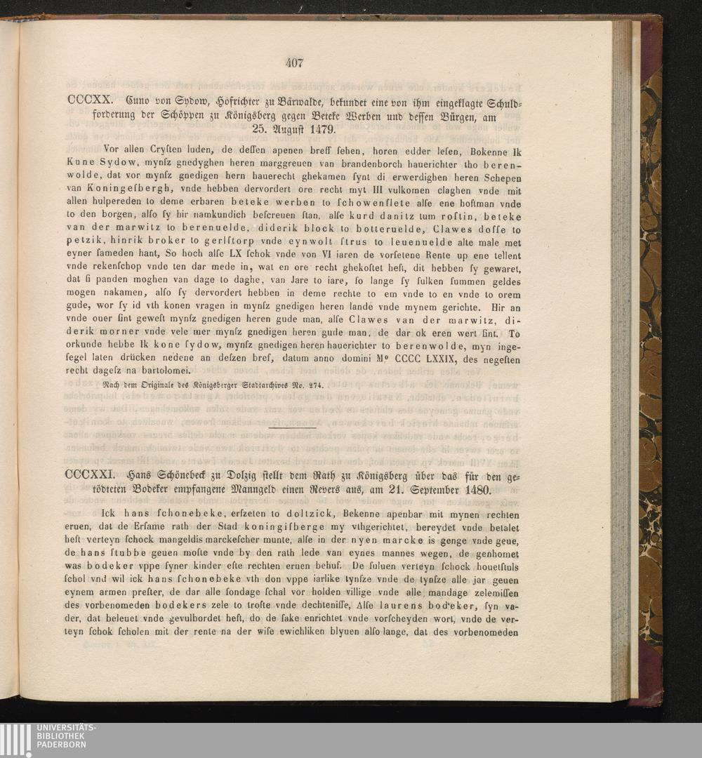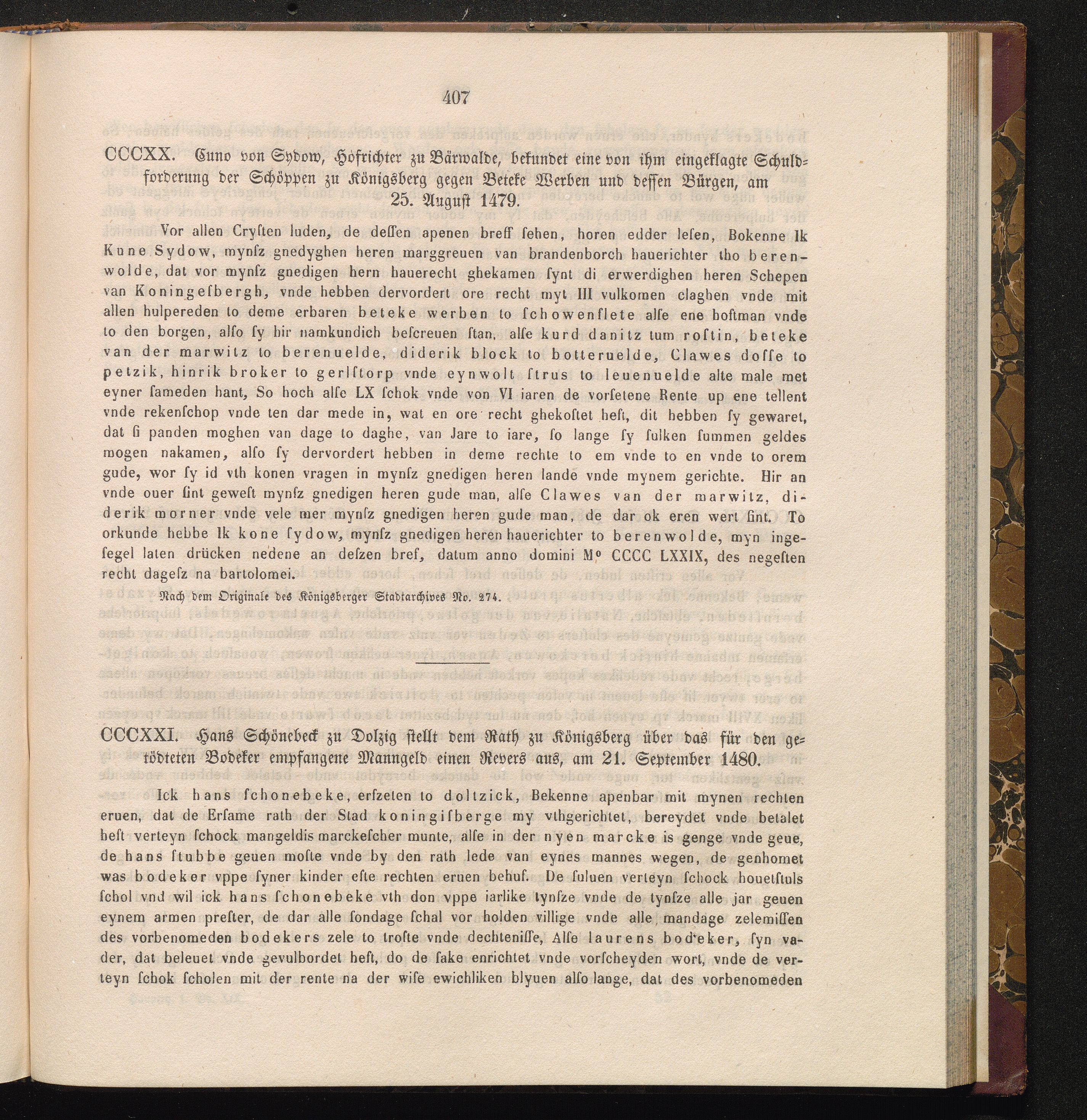 CCCXX. Cuno von Sydow, Hofrichter zu Bärwalde, bekundet eine von ihm eingeklagte[...]