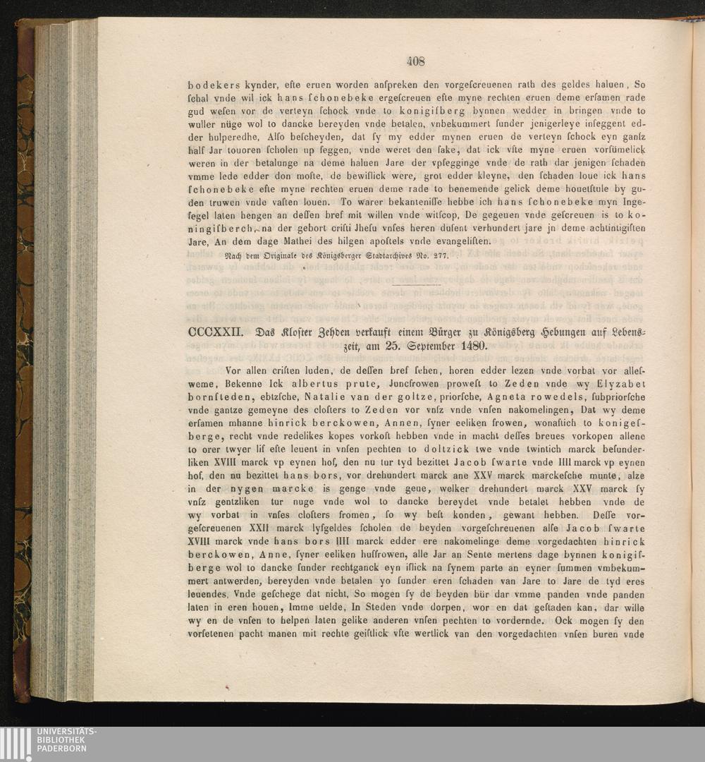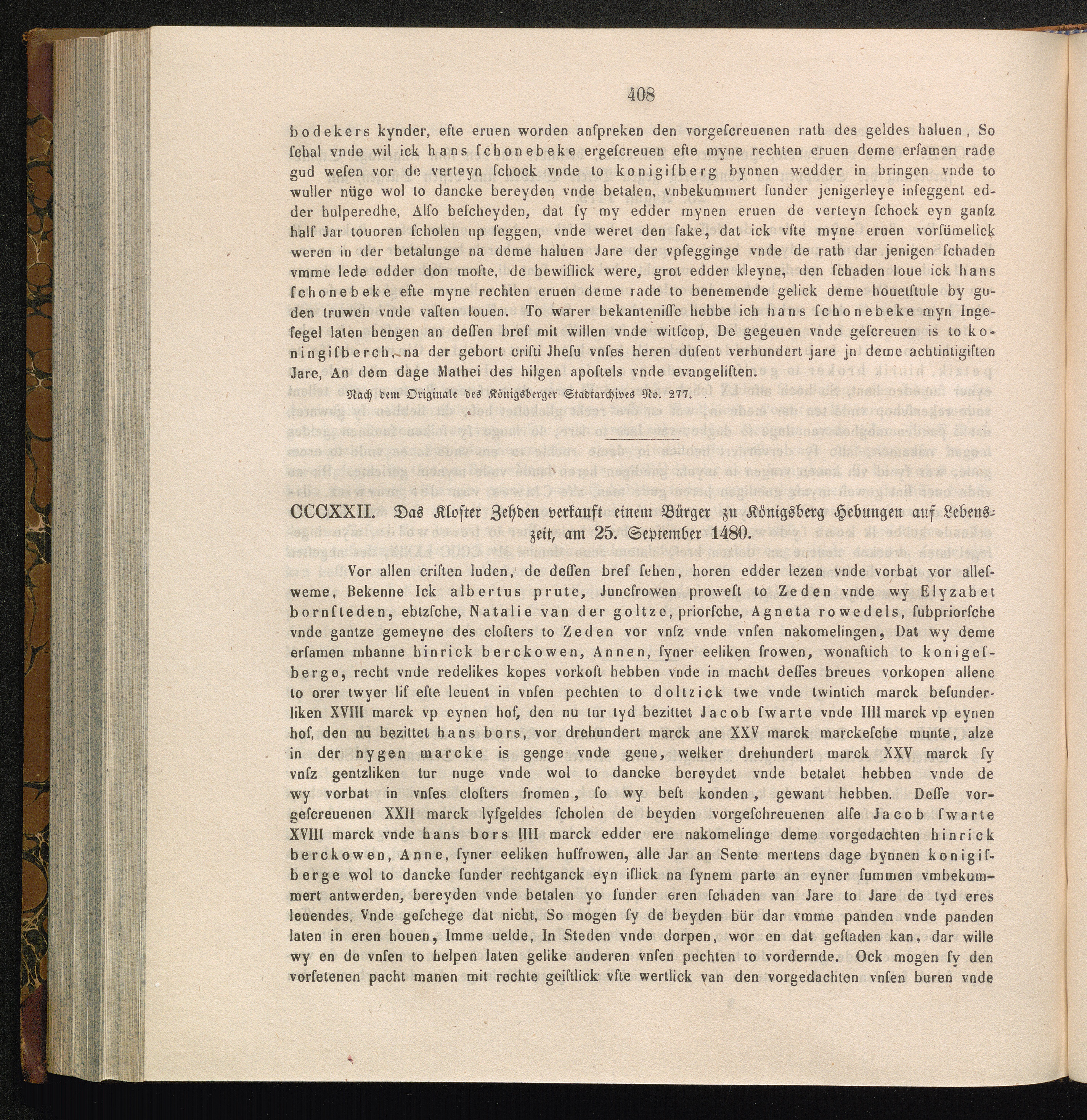 CCCXXII. Das Kloster Zehden verkauft einem Bürger zu Königsberg Hebungen auf Lebenszeit,[...]