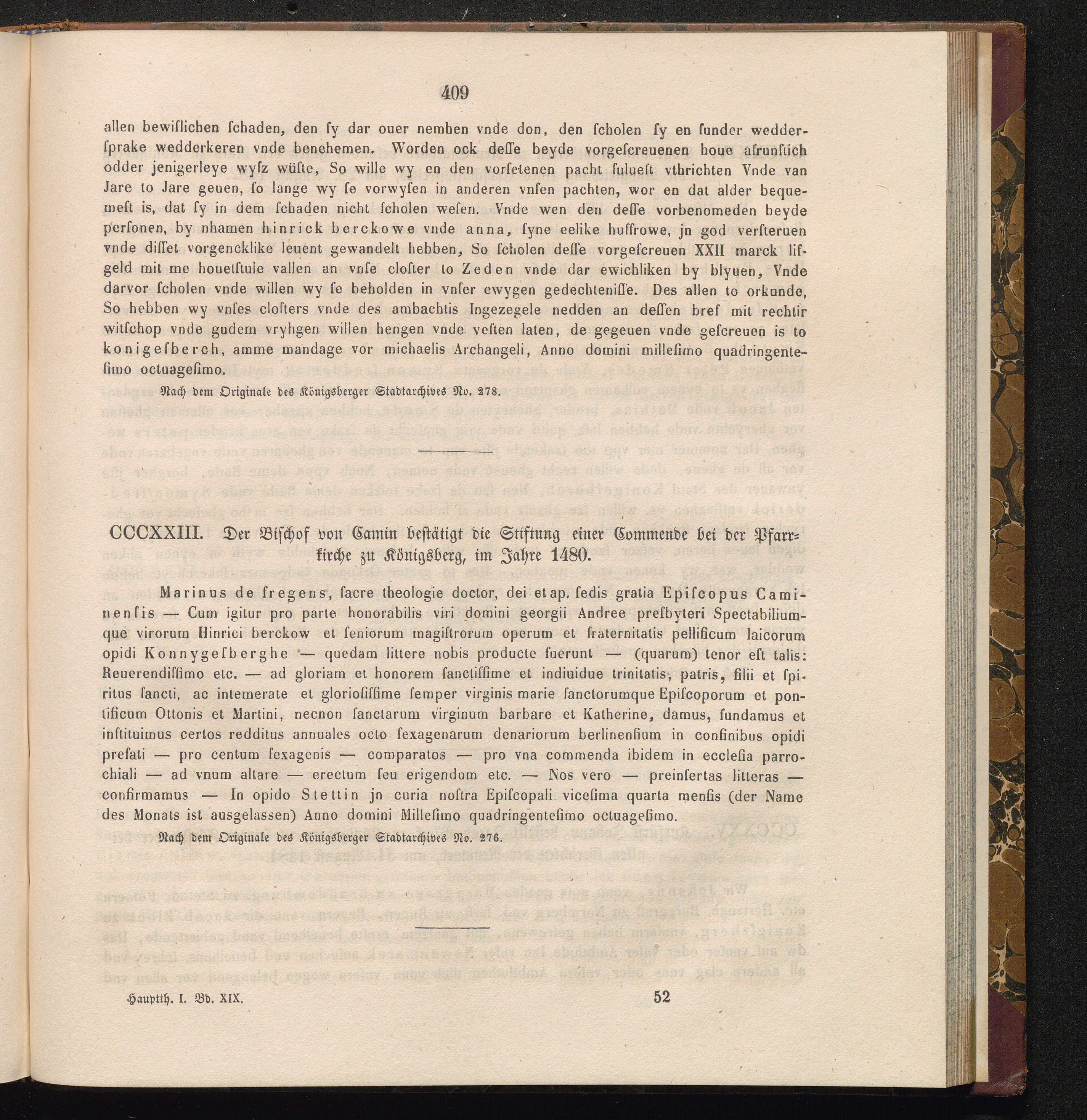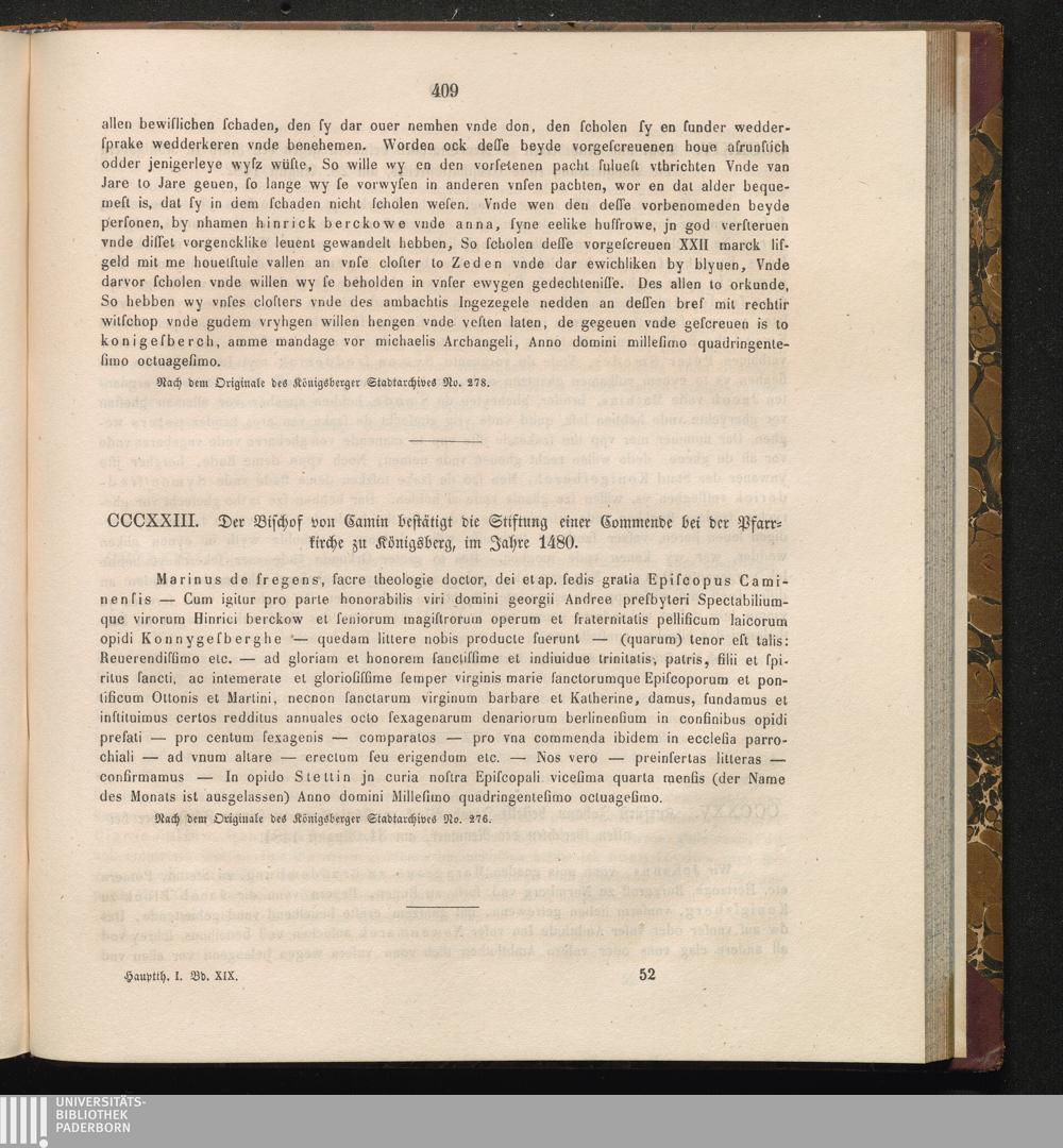 CCCXXIII. Der Bischof von Camin bestätigt die Stiftung einer Commende bei der Pfarrkirche[...]