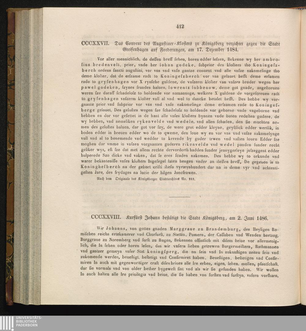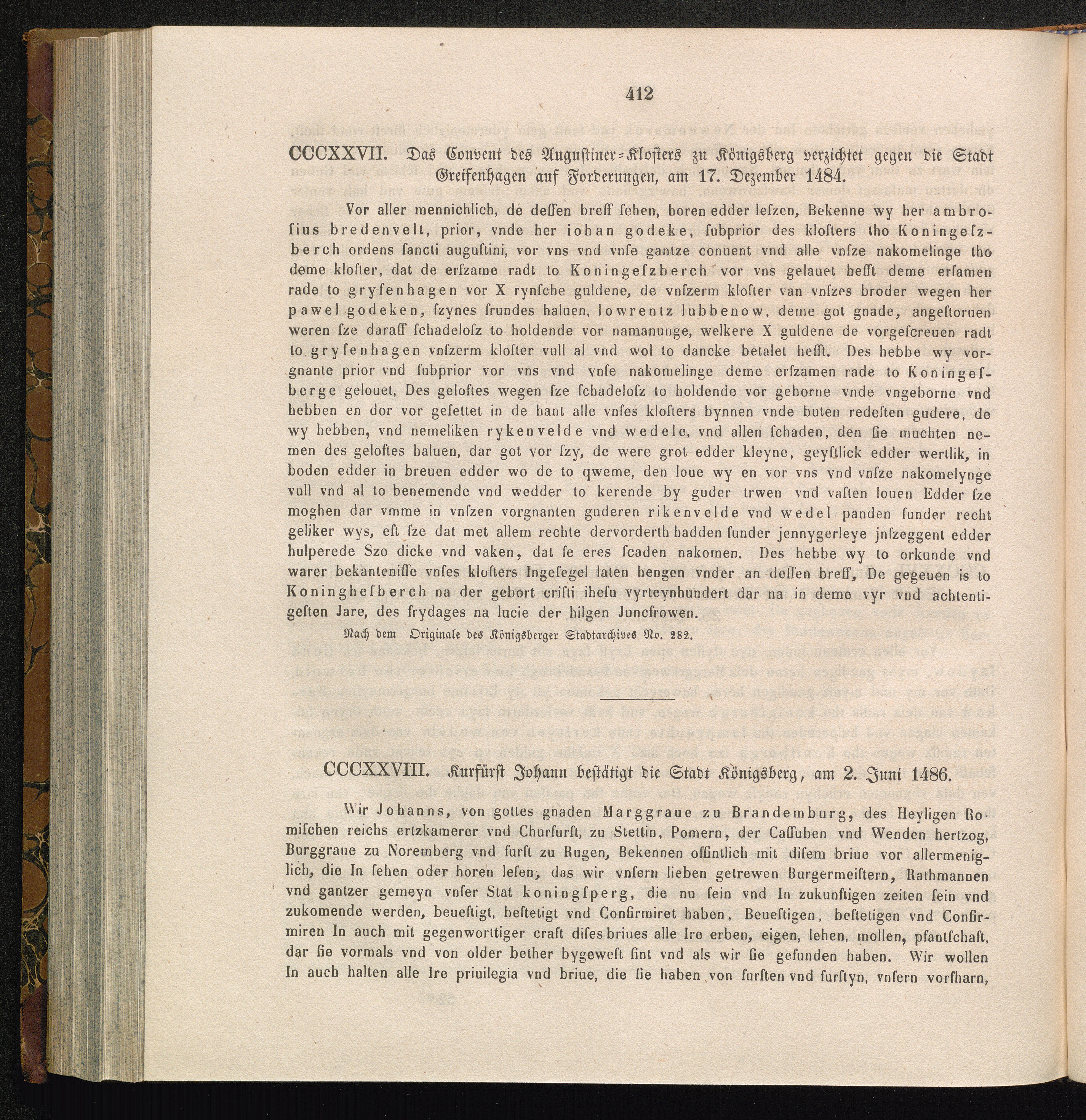 CCCXXVII. Das Convent des Augustiner-Klosters zu Königsberg verzichtet gegen die[...]