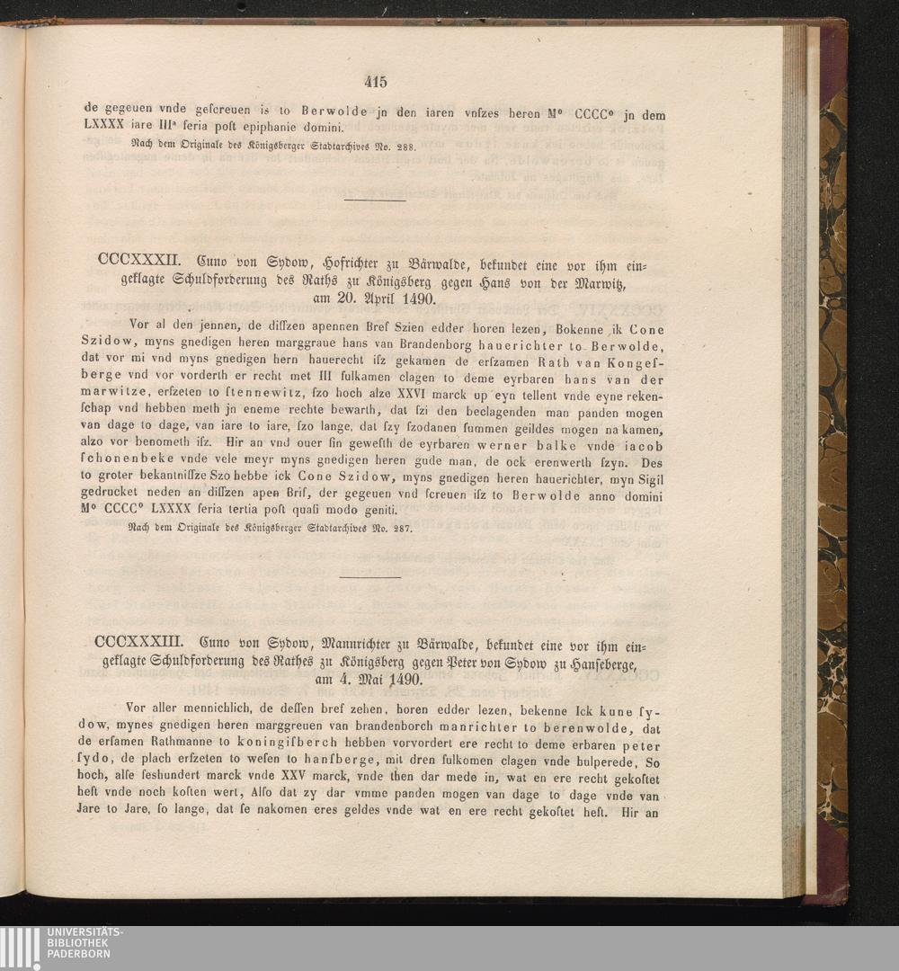 CCCXXXII. Cuno von Sydow, Hofrichter zu Bärwalde, bekundet eine vor ihm eingeklagte[...]