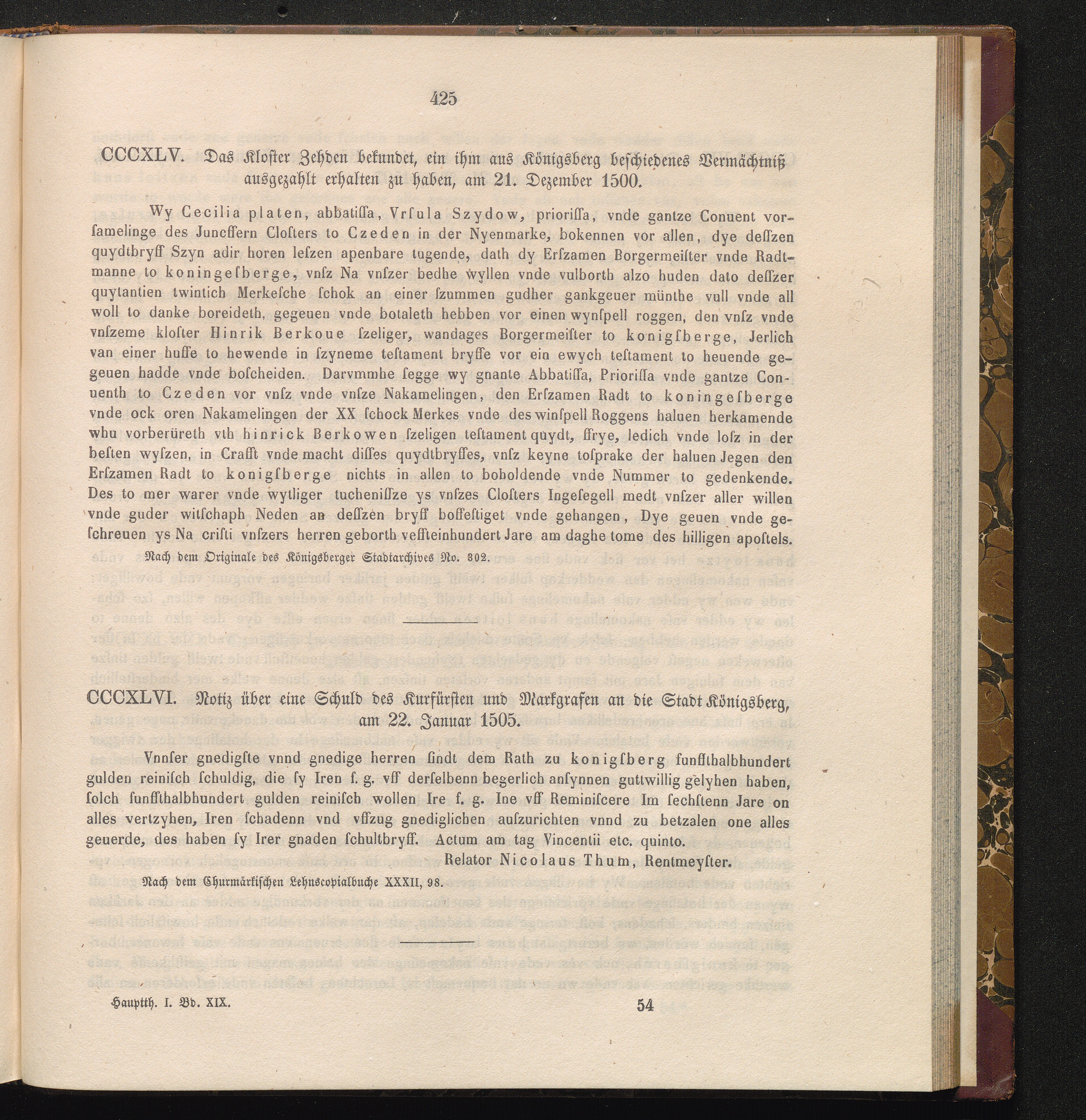 CCCXLV. Das Kloster Zehden bekundet, ein ihm aus Königsberg beschiedenes Vermächtniß[...]