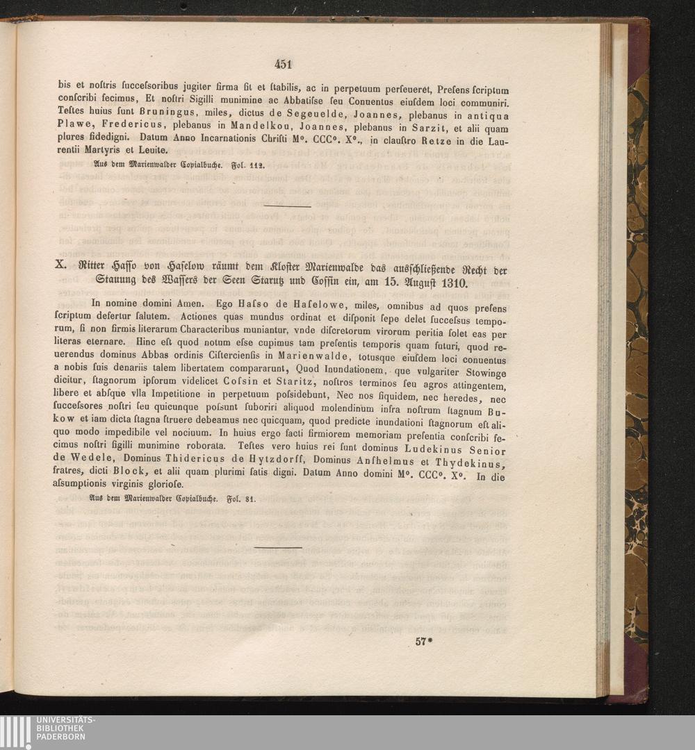 X. Ritter Hasso von Haselow räumt dem Kloster Marienwalde das auschließende Recht[...]